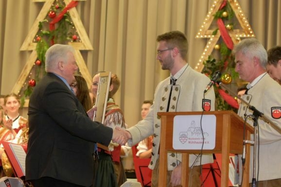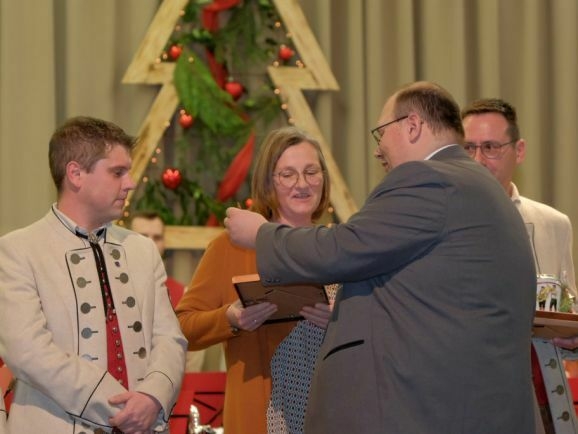 Mühlhausen - Auch beim Musikverein Mühlhausen hat Corona einen Ehrungsstau verursacht: Deswegen wurden während des Weihnachtskonzertes zahlreiche Musiker des Musikvereines für ihre Treue zum Verein und zur Musik vom stellvertretenden Kreisverbandsvorsitzenden des Kreises Biberach, Markus Bitterwolf, geehrt.