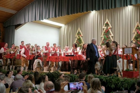 Nun wurde Karl Sauter als aktiver Musiker verabschiedet und mit zwei großen Geschenken bedacht: Zum Einen wurde er vom Verein zum Ehrenvorstand ernannt, zum anderen durfte er sein Lieblingsstück , den „Egerländer Musikantenmarsch“ während des Konzertes zu seinem Abschied dirigieren.