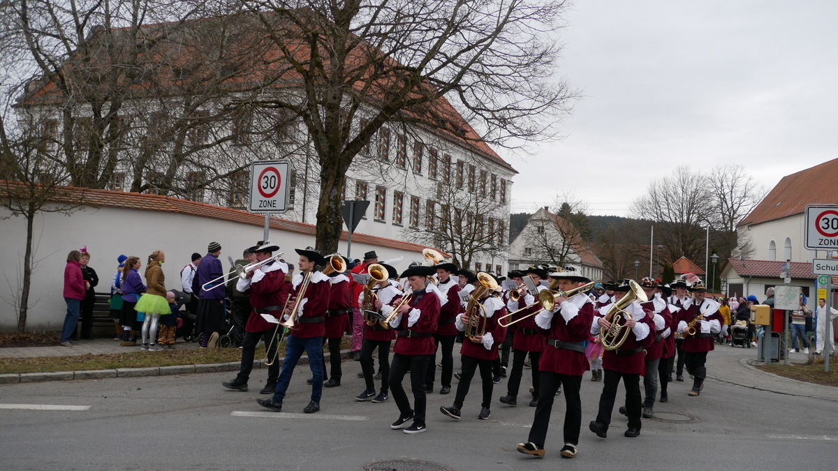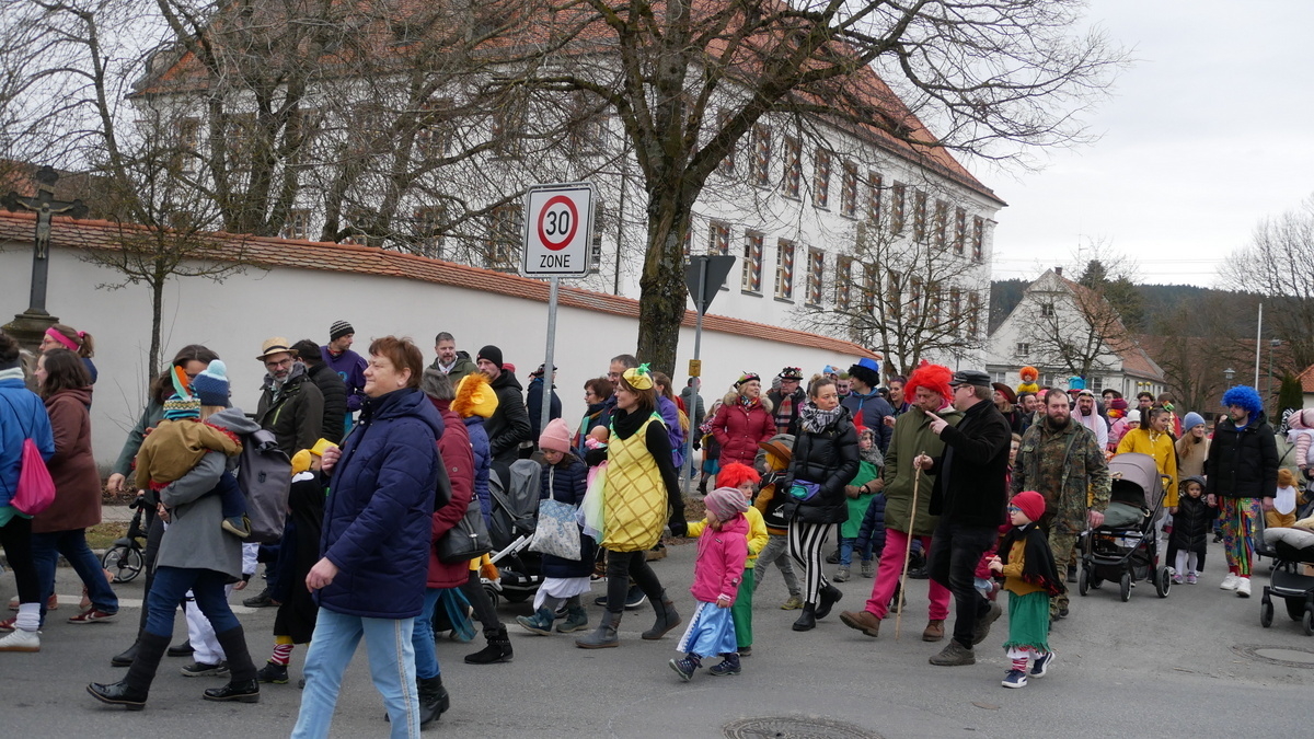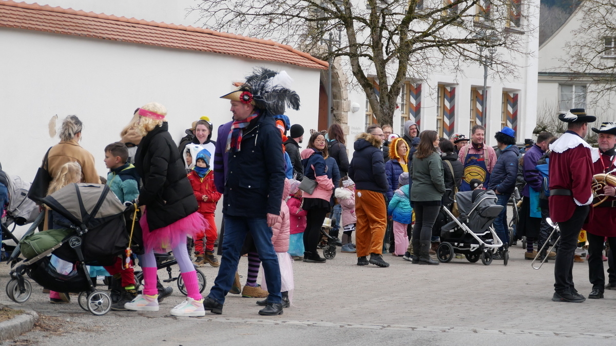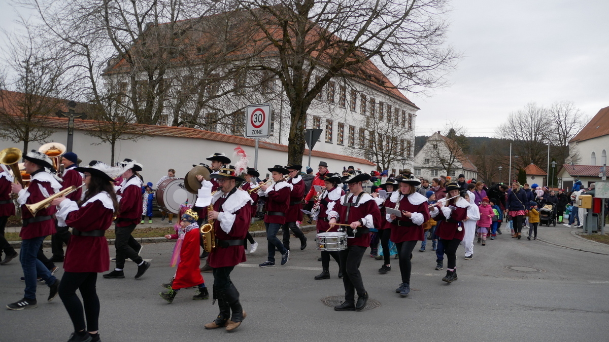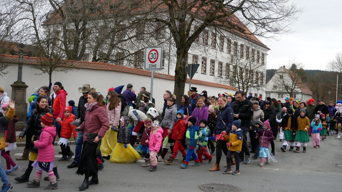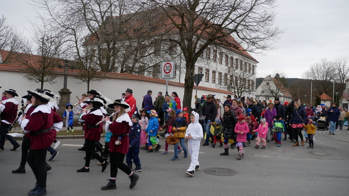 Auch Oberbürgermeister Matthias Henne mit Familie konnte sich davon überzeugen, dass hier alles super organisiert und für die Kinder außergewöhnlich viel geboten wird. Haisterkirchs Musikanten sorgten mit schwungvollen, närrischen Klängen vor, während und nach dem Umzug, auch noch in der Halle für beste Unterhaltung.