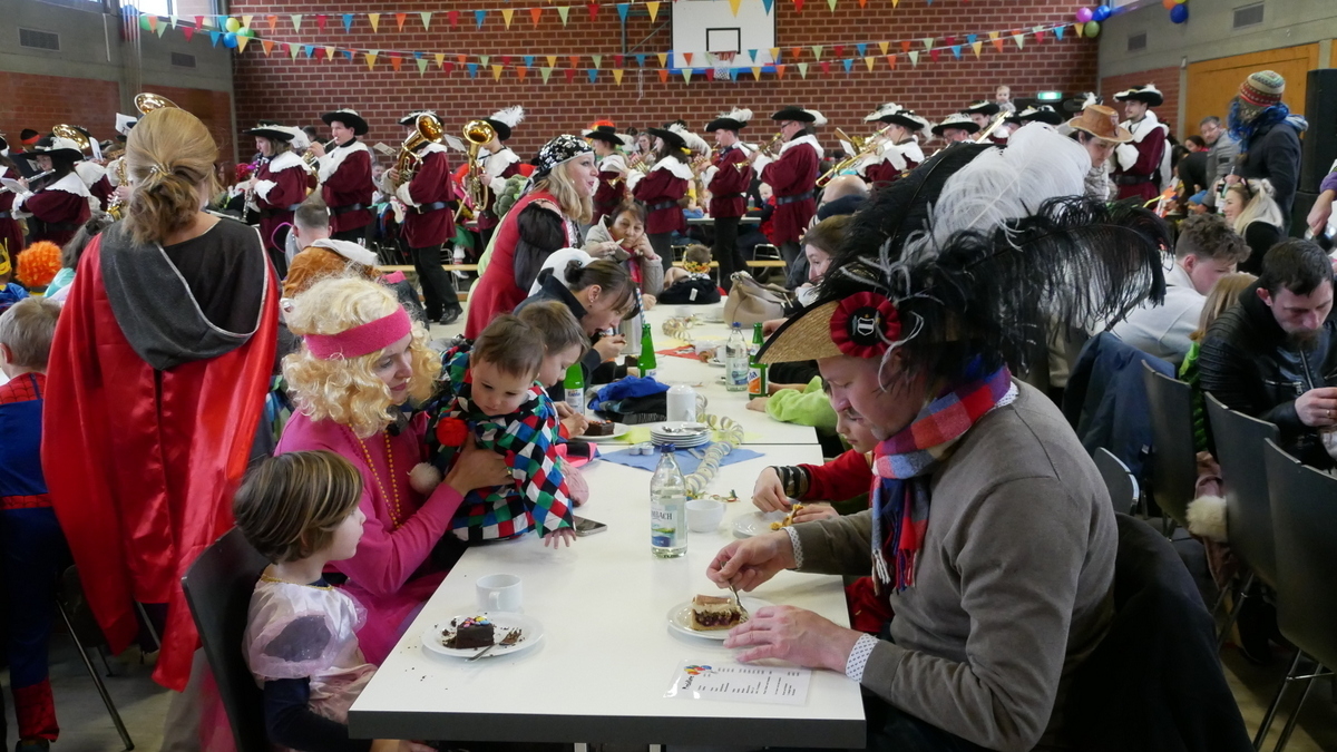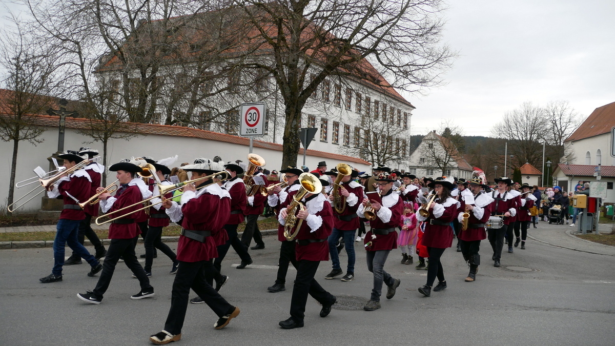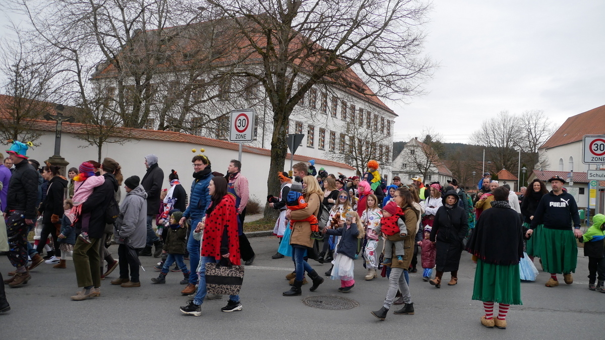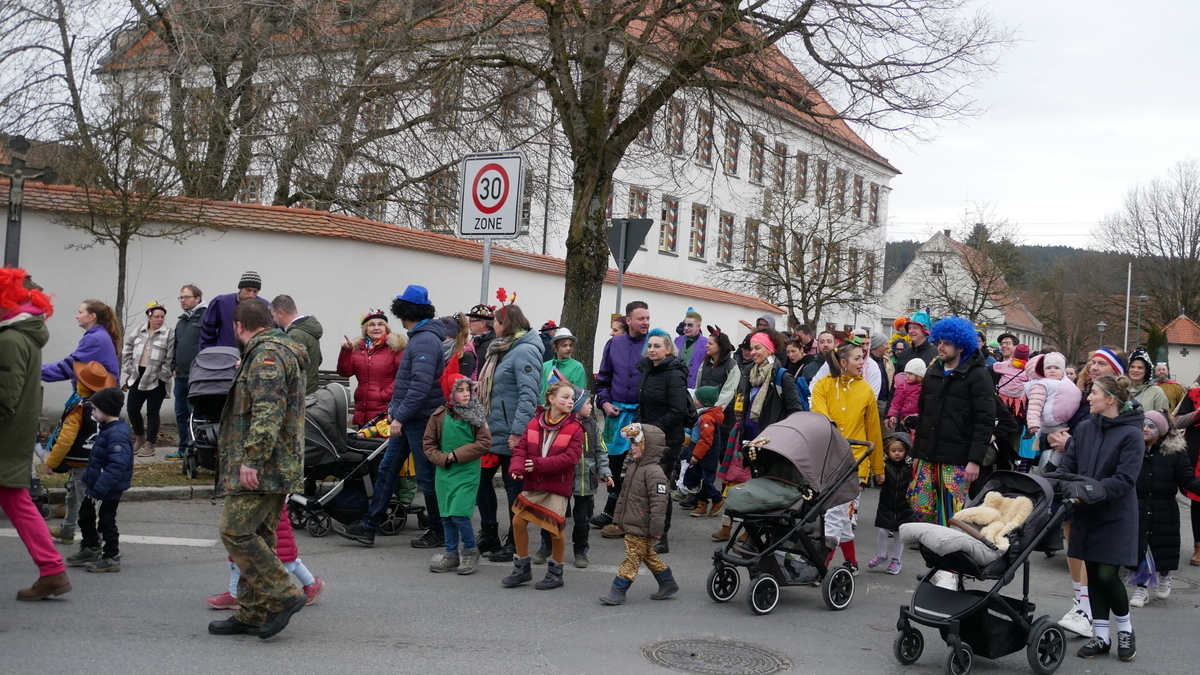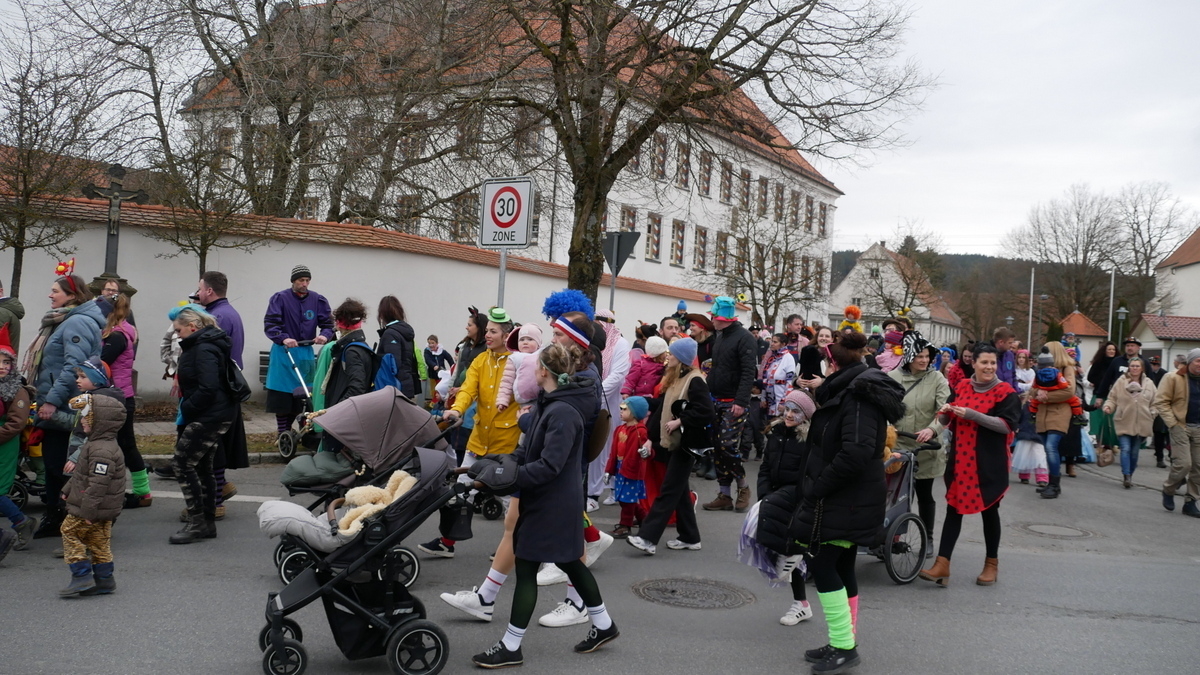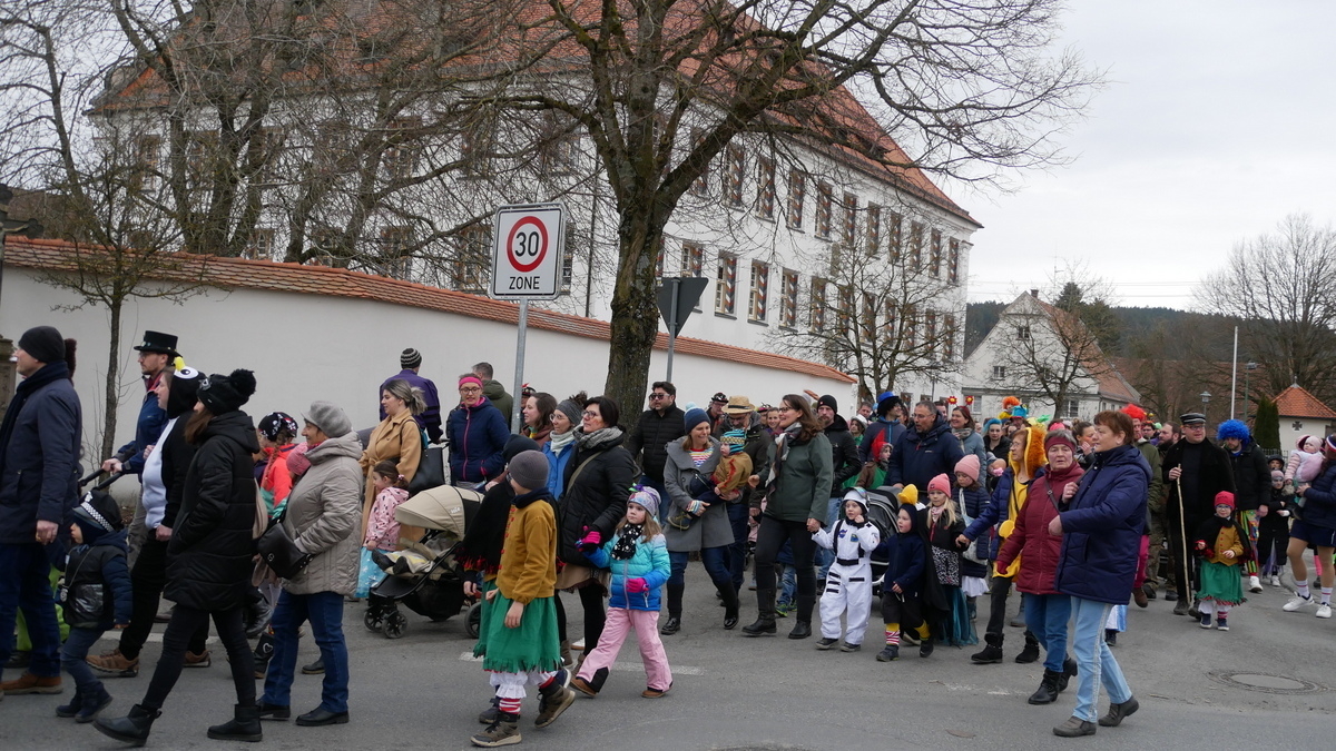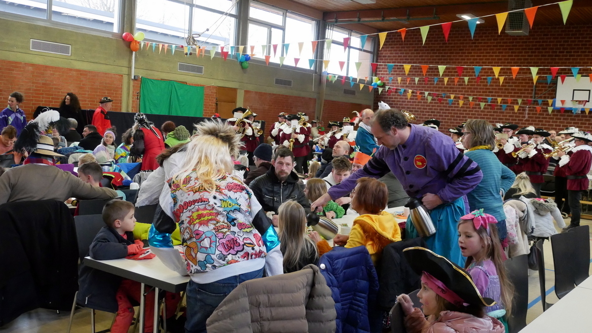 Auch Oberbürgermeister Matthias Henne mit Familie konnte sich davon überzeugen, dass hier alles super organisiert und für die Kinder außergewöhnlich viel geboten wird. Haisterkirchs Musikanten sorgten mit schwungvollen, närrischen Klängen vor, während und nach dem Umzug, auch noch in der Halle für beste Unterhaltung.