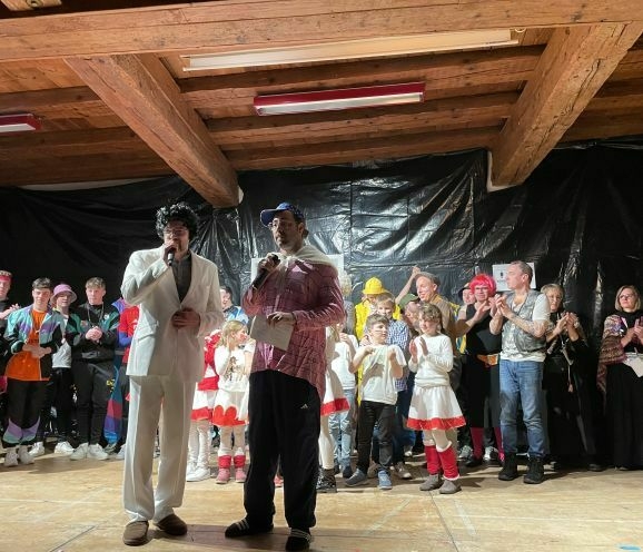 Für beste Unterhaltung sorgten die verschiedenen Abteilungen des SC Michelwinnaden sowie altbewährt die Lumpenkapelle Leupolz und das Sammlervölkle Michelwinnaden. Erstmalig, sehr humorvoll und souverän führten Alexander „Wiese“ Wiest und Michael „Mike“ Romer durch das Programm und manch einer im Dorfgeschehen musste die Federn lassen.