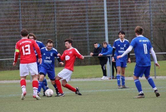 Urlaubs- und verletzungsbedingt mussten die Reutener Gäste auf wichtige und erfahrene Akteure wie etwa Niklas Klawitter, Timo Schüle, Sven Patent, Marcel Freisinger und Patrick Bentele verzichten. Trotz aller Rückschläge waren die Gäste aber gut gewappnet für den Auftakt nach der Winterpause. Bei leichtem Nieselregen war auf Gästeseite zunächst Geduld gefragt, die Reutener brachten diese auch auf und agierten hochkonzentriert.