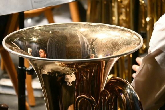 Das zweite Stück nach der Pause war die irische Melodie „May the Rose Rise“ von Markus Götz. Hier konnte die Violin-Solistin Sophia Skrdlant nochmals ihr eindrucksvolles Spiel unter Beweis stellen. „All of Me“ war die Adaption eines zeitgenössischen Chart-Hits an Blasorchester. Als Solist am Tenor Horn konnte Francesco Brändle glänzen.