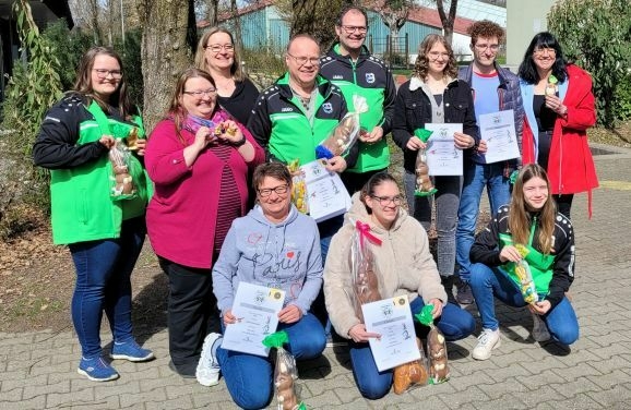 Platz eins belegte Saskia Harr mit einem hervorragenden 10,8 Teiler und holte sich somit den 1,5 kg Osterhasen, dicht gefolgt von Thomas Bäurer mit einem 18,0 Teiler und Sabine Dietenberger mit 28,0 auf den Plätzen zwei und drei. Diese Erfolge ergänzten Katharina Fesseler mit Platz vier (53,7), Sarah Geng auf fünf (58,2) und Igor Franz auf sieben (79,5).