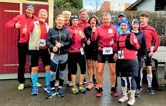 Die 11,7 KM Strecke unter die Sohlen nahmen: Beate Bell in 1:02:25, AK 50 Pl. 1. Silke Altvater, 1:02:43, AK 50 Pl. 2. Klaus Buschle in 0:58:10 Std. AK 60 Pl. 5. Peter Altvater, 0:59:10, AK 50 Pl. 10. Roman Schnetz, 1:00:34, AK 60 Pl.11. Dietmar Hillebrandt, 1:01:35, AK 55 Pl. 12. Richard Köberle, 1:02:31, AK 60 Pl. 12 und Dietmar Kleber, 1:16:48, AK 65 Pl. 10.