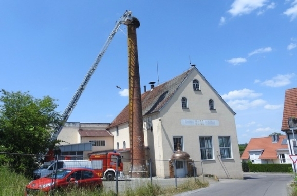 Michelwinnaden - Am 2. Juni wurden die 3 properen Jungstörche auf dem Brauereikamin in Steinach beringt ,wie bisher von Frau Ute Reinhard. Der schwerste brachte 4,1 kg auf die Waage.
