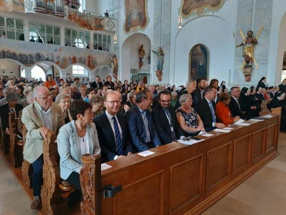 Auch die beiden Emporen waren gefüllt, insgesamt haben mehr als 500 Gläubige das Jubiläum in der Kirche mitgefeiert. Unter den vielen Gästen sah man auch Bad Waldsees Altbürgermeister Rudolf Forcher, den Landtagsabgeordneten Raimund Haser und neben OB Matthias Henne auch Bürgermeisterin Monika Ludy, Kreissparkassenchef Heinz Pumpmeier, Reute-Gaisbeurens Ortsvorsteher Achim Strobel und Dr. Konstantin Eisele von der Solidarischen Gemeinde.