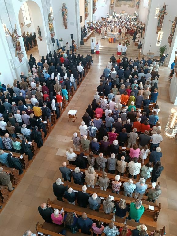 Reute - So voll war die Wallfahrtskirche St. Peter und Paul in Reute schon lange nicht mehr. Trotz weiterer Bestuhlung mussten viele Besucher den zweieinhalbstündigen Gottesdienst stehend mitfeiern. Das Kloster Reute feierte 175-jähriges Bestehen. Die Wurzeln liegen in Ehingen. In Reute sind die Franziskanerinnen seit 1870 ansässig.