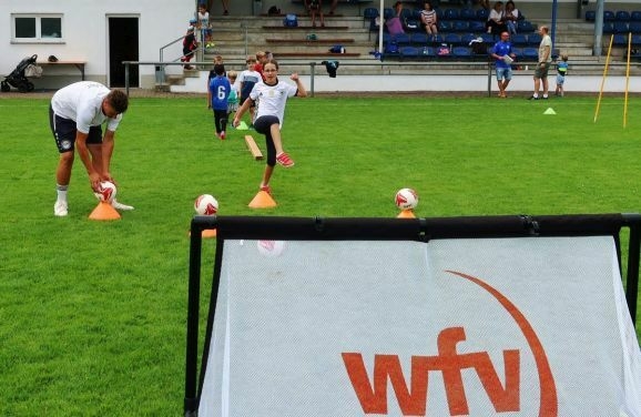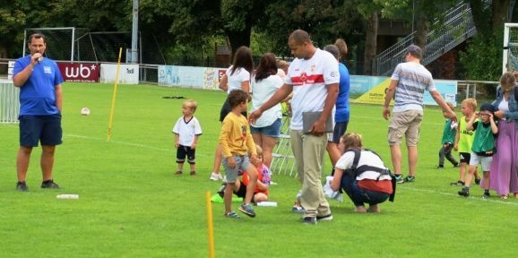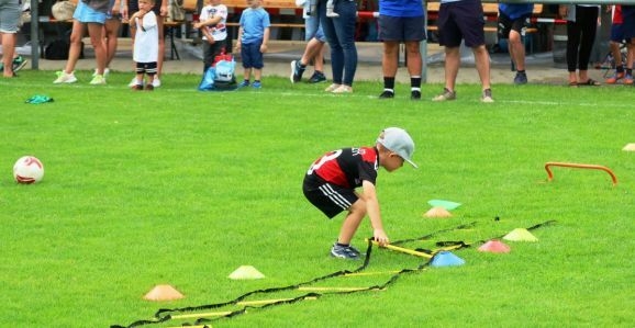 Stets wurden die Kinder mit lobenden Worten ermuntert, auch wenn es mal an den verschiedenen Stationen beim Hüpfen, Balancieren, Umkurven, Slalomlauf, Ballführen oder Schießen noch nicht so perfekt klappte. Erfreulich war, dass auch aus dem Nahbereich um Haisterkirch fußballbegeisterte Mädchen und Buben gekommen sind. .Als Belohnung gab es für die Schnuppernden Pommes - knackig zubereitet von Anton Gasser - und Getränke..
