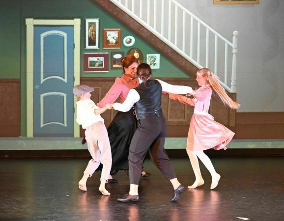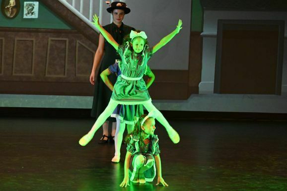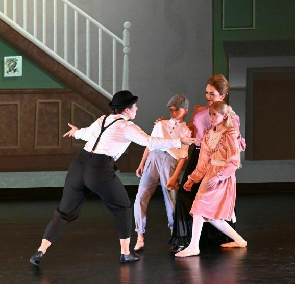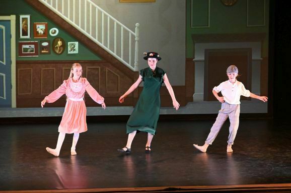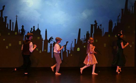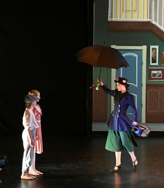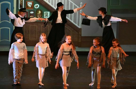 Simone Ebenhoch hat die Geschichte in zauberhafte einzelne Tanzszenen zusammengefasst. Mal tauchen die beiden Kinder mit Mary und Bert in Straßenmalereien, mal tanzen sie mit Flamingos und Rehen in einer fabelhaften Welt und verbringen ein Picknick mit quirligen Pinguinen. Gelandet auf den Dächern von London, tanzen sie mit den Kaminfegern in die aufregende Nacht.