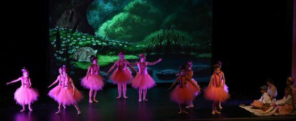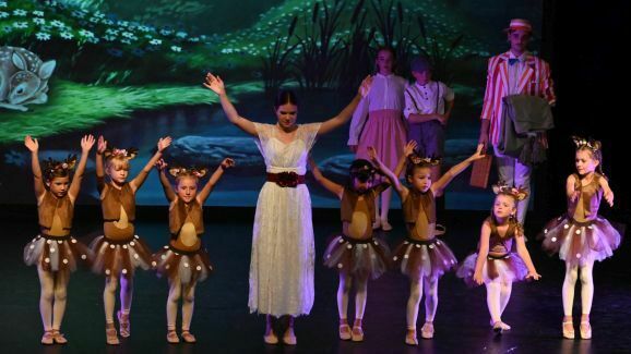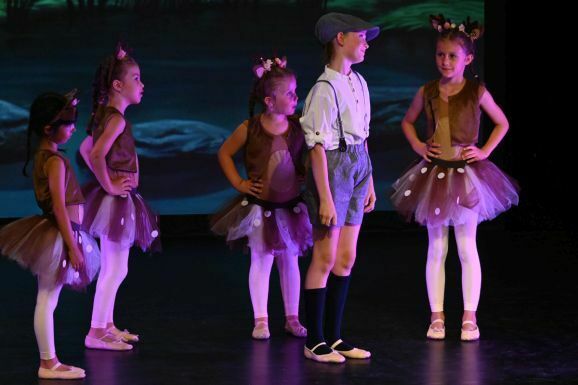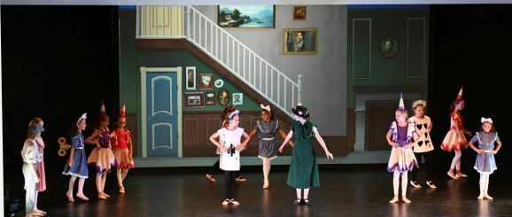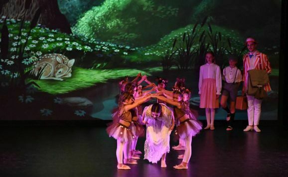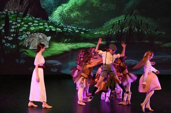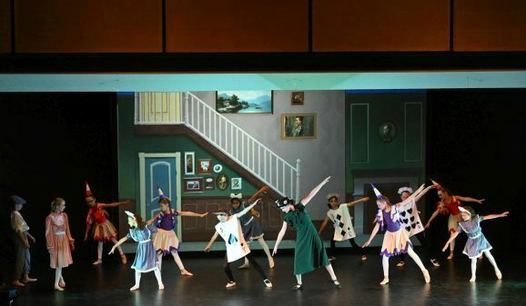 Die Umsetzung der fantastischen Welten gelang Simone Ebenhoch mit phantasievollen Kostümen und einer großen Schar tanzender Kinder. Mal wirbelten die Kinder als Harlekine, Spielkarten und Aufziehfiguren verkleidet über die Bühne, im nächsten Bild trat eine Schar mit glitzerndem Lametta an den Kostümen auf. Mit gepunkteten Tütüs stellten sie Rehe dar, brachten im Pinguin-Frack die Leckereien zum magischen Picknick.