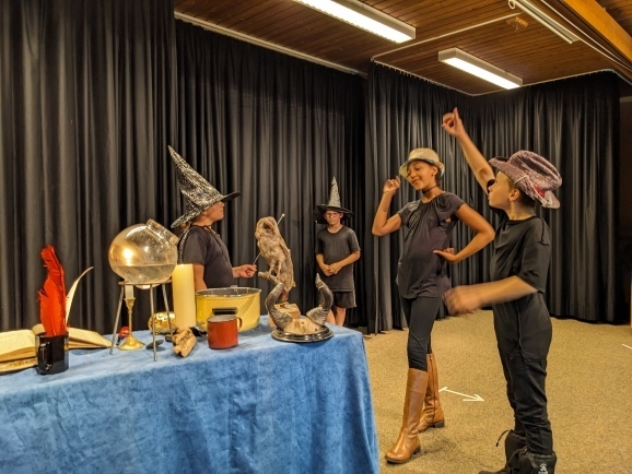 Nachdem die ganze Klasse mit ihrem Klassenlehrer Stefan Betz mehrere Wochen intensiv geprobt hatte, war das Stück nun endlich aufführungsreif und wurde insgesamt viermal verschiedenem Publikum vorgespielt. Eingeladen waren neben der Grundschule natürlich auch die Eltern. Die Geschichte wurde von den Kindern durchgängig selbst entwickelt und es galt dabei, einige Probleme zu lösen: Wie zaubert man einen Elefanten auf die Bühne?
