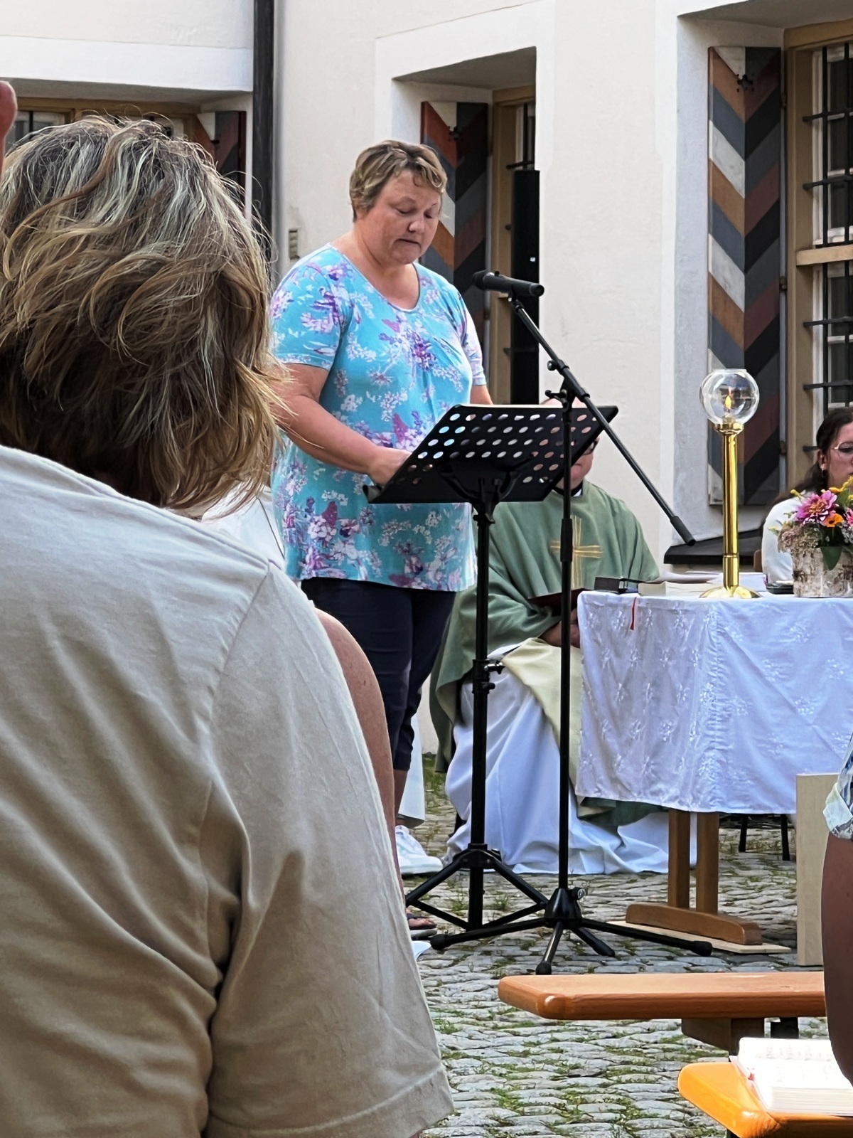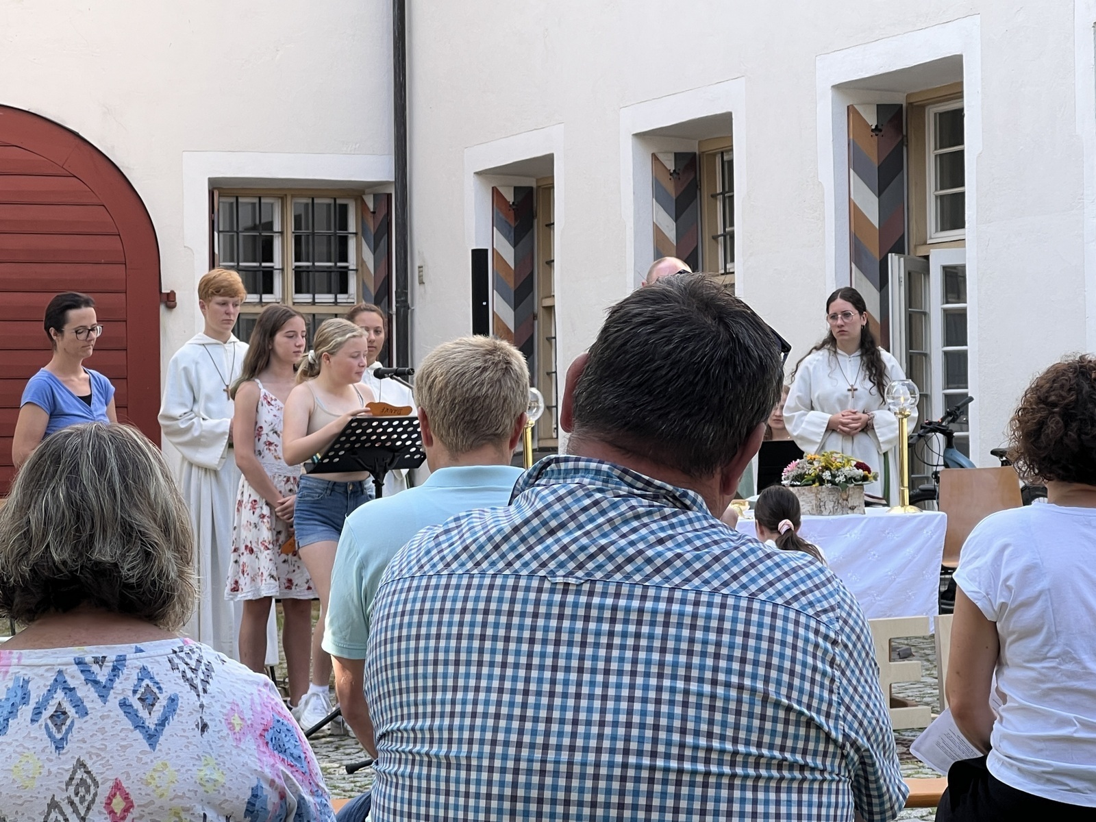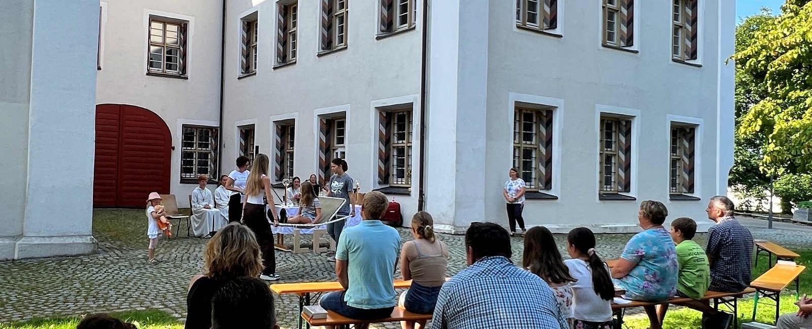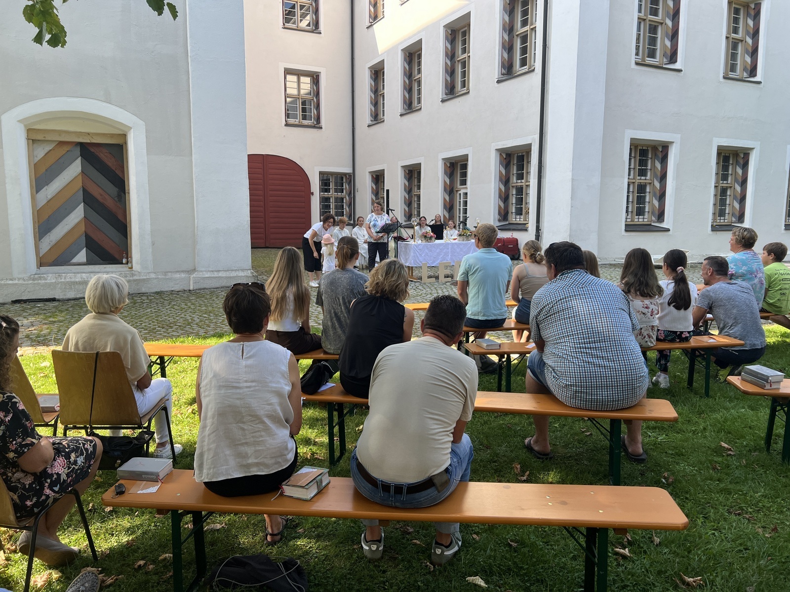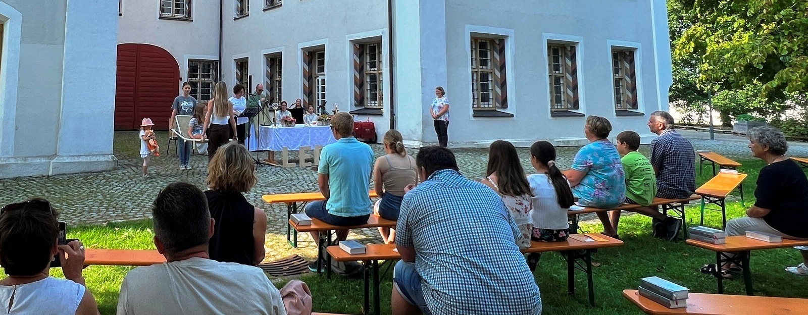Haisterkirch - Am Sonntagvormittag (10. September) hatte die Kirchengemeinde Haisterkirch zu einem Familiengottesdienst mit Open-Air- Charakter eingeladen. Fleißige Helferinnen und Helfer hatten zusammen mit Mesnerin Claudia Waibel im hinteren Areal des Kosterhofs alles perfekt hergerichtet für den Gottesdienst m Freien.