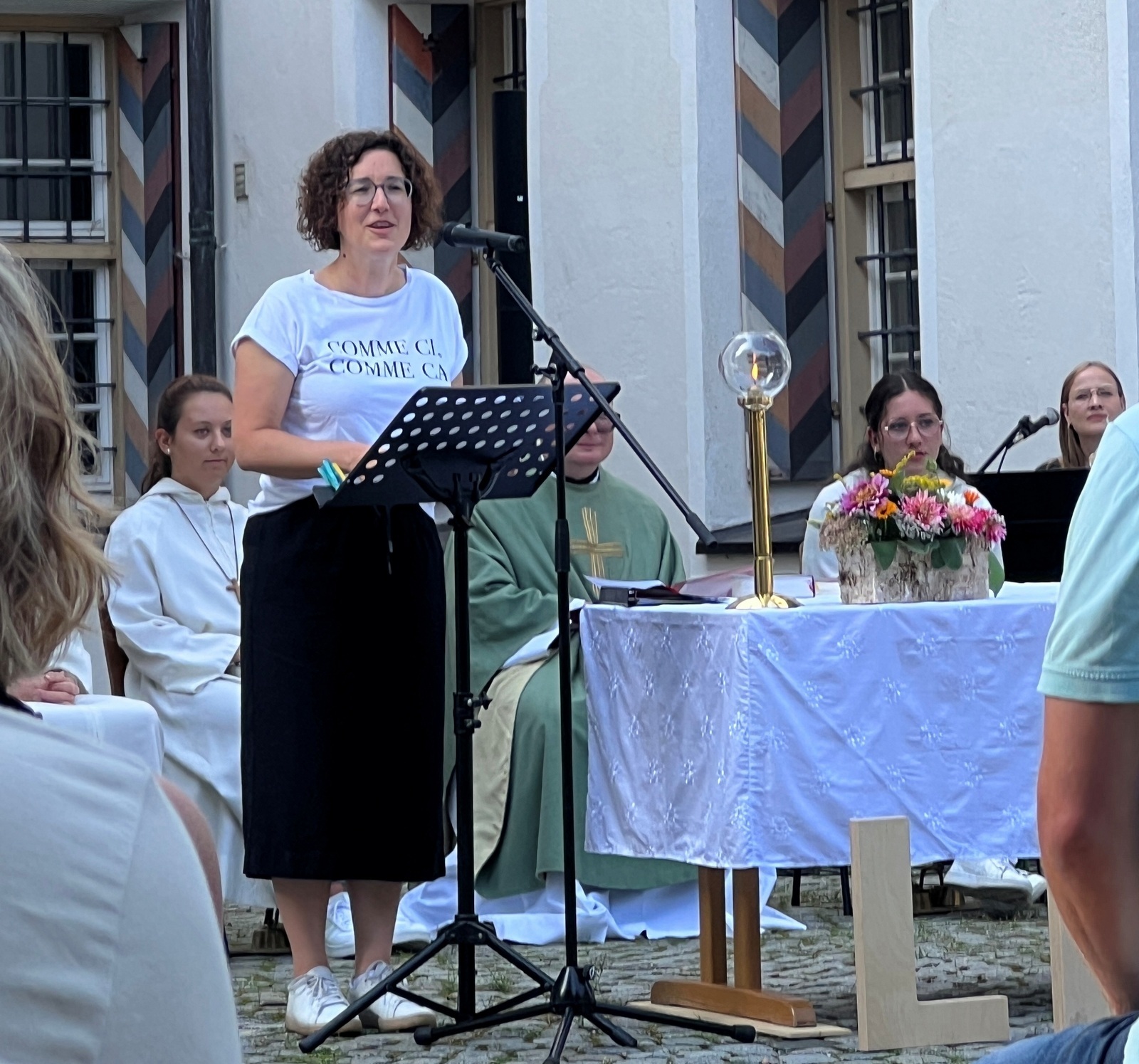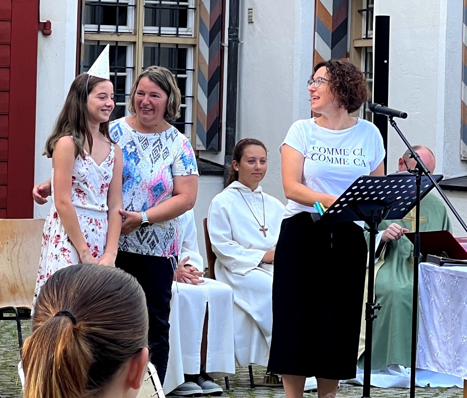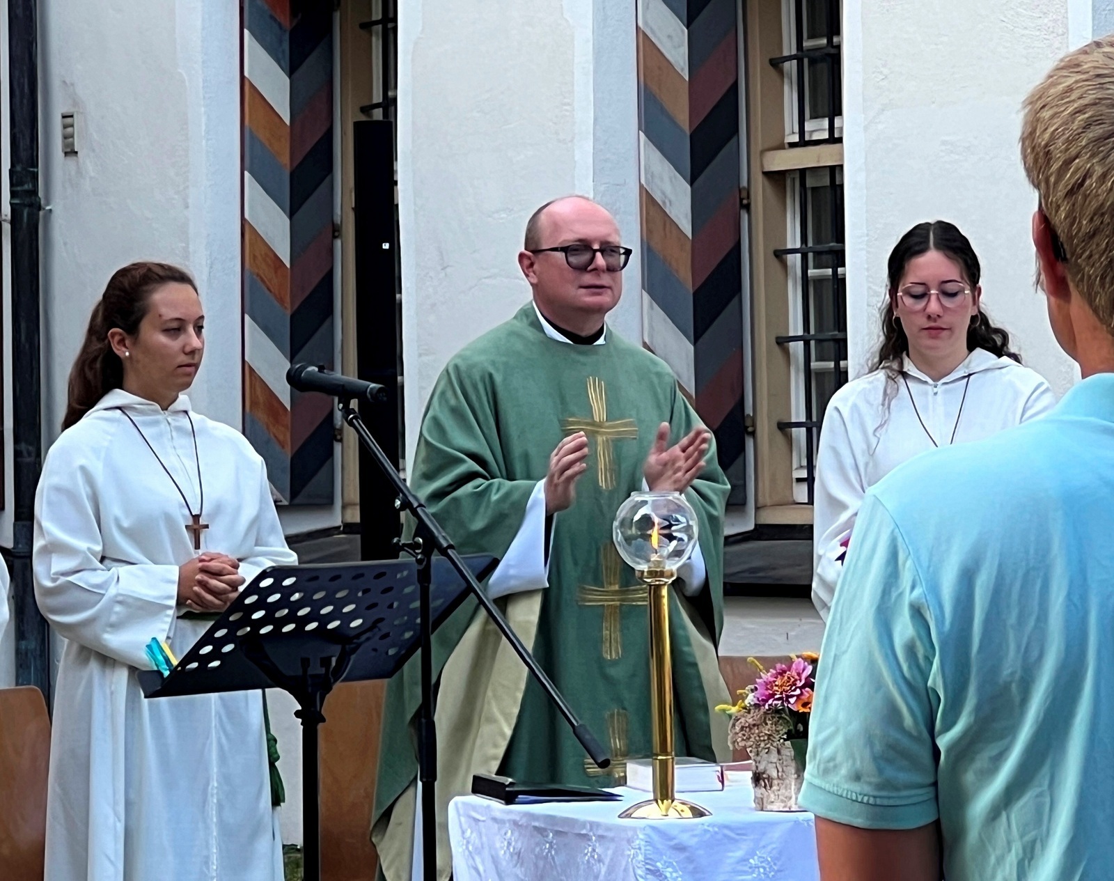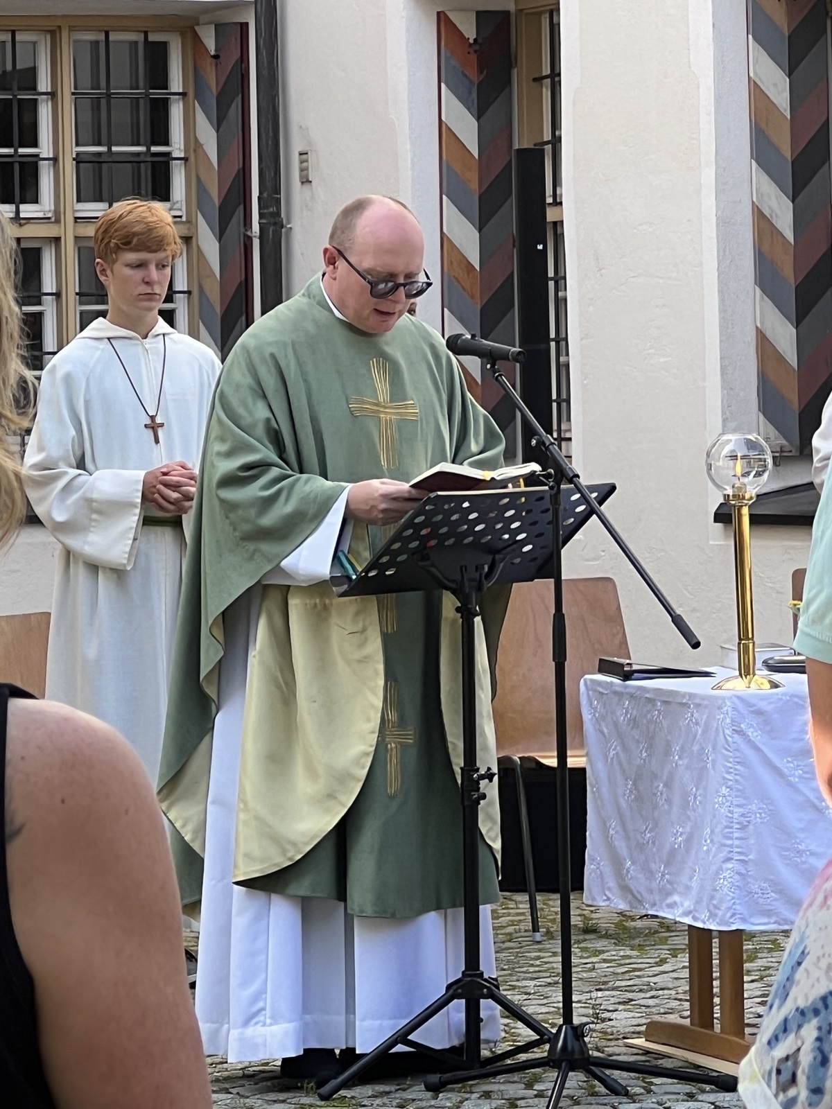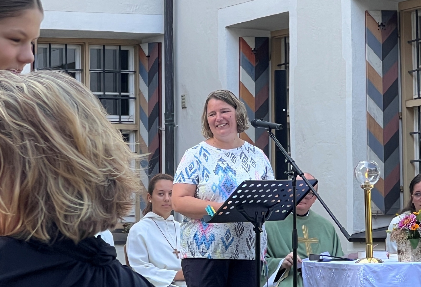 Haisterkirch - Am Sonntagvormittag (10. September) hatte die Kirchengemeinde Haisterkirch zu einem Familiengottesdienst mit Open-Air- Charakter eingeladen. Fleißige Helferinnen und Helfer hatten zusammen mit Mesnerin Claudia Waibel im hinteren Areal des Kosterhofs alles perfekt hergerichtet für den Gottesdienst m Freien.