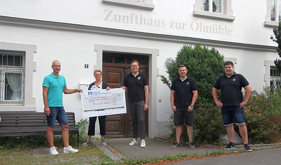 Gemeinsam mit dem Säckelmeister der Narrenzunft Waldsee, Andreas Glaser, überreichte eine Abordnung des Jungelferrates um ihren Oberelfer Marc Schroedter die stolze Spendensumme von 555 Euro an den Kinderschutzbund. Stellvertretend für den Kinderschutzbund Waldsee bedanke sich die zweite Vorsitzende, Gisela Riedesser, bei den fleißigen Spendensammlern aus Jungelferrat und Narrenzunft.