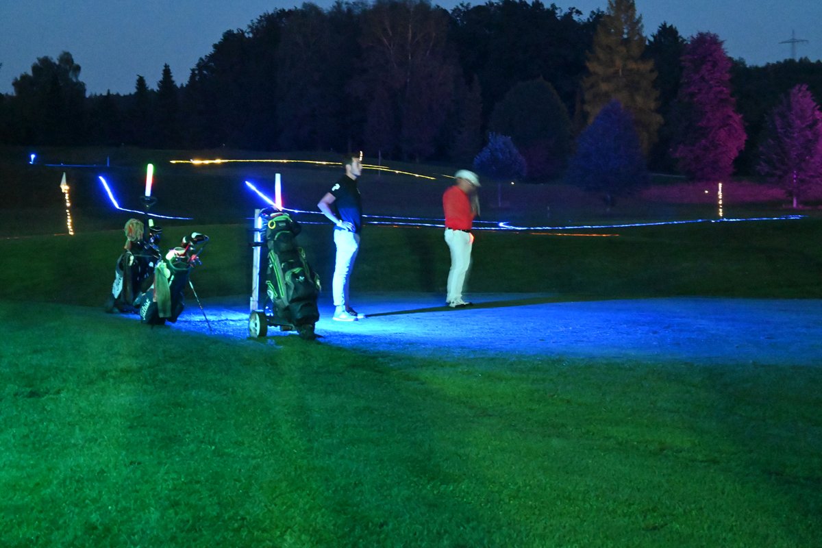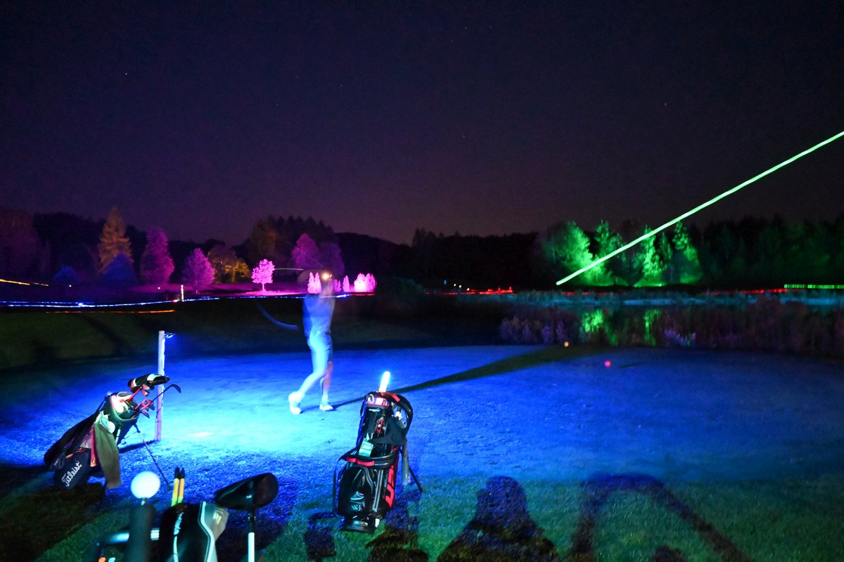 „Jetzt, wenn die Tage kürzer werden, müssen Golfer nicht auf ihren Lieblingssport verzichten“ so Sascha Binoth in seiner Eröffnungsansprache. Und die ersten Spieler lassen seinen Worten Taten folgen und schlagen leuchtende Bälle in die Nacht.