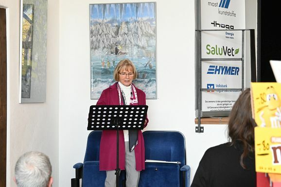 Marianne Jocham begrüßte die Gäste im Namen der Seenema Genossenschaft und gab einen kurzen biografischen Abriss der Künstlerin. Ganz am Rande erwähnte sie noch die neue Lüftungsanlage des Seenemas, die in wenigen Tagen fertig gestellt würde.