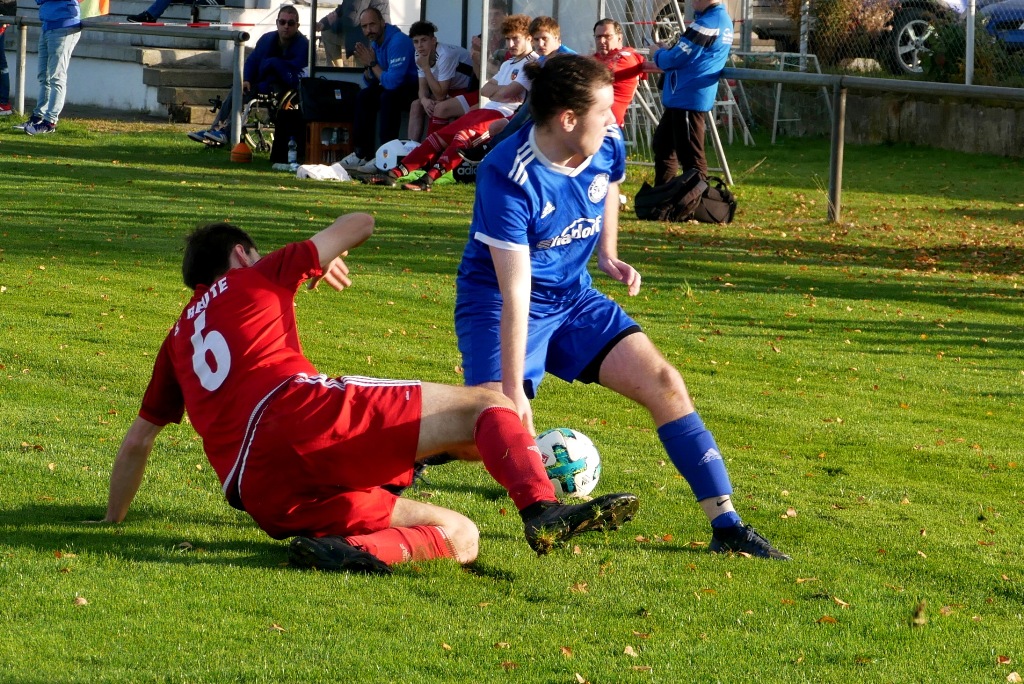Mit diesem beruhigenden Vorsprung wurde das Spiel in Halbzeit zwei ohne besondere Höhepunkte durch die einheimischen Blau-Weißen verwaltet. Das änderte sich schlagartig in den letzten zwanzig Minuten nach dem Anschlusstreffer (wiederholter Strafstoß durch Lars Stöckler), dem 2. Tor für den SV Reute.