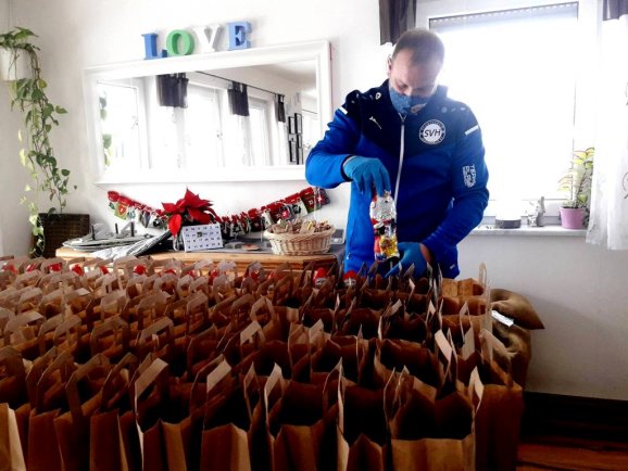 SVH-Jugendabteilung über seinen Vorschlag, die 120 Jugendlichen von den Bambinis bis zur B-Jugend am Nikolaustag 2020 aufzusuchen und ihnen ein Überraschungsgeschenk zu überbringen. Der Vorschlag fiel auf fruchtbaren Boden und so machte er sich daran, 120 Tüten zu besorgen und diese mithilfe seiner Familie (Ehefrau und den zwei ältesten der vier Kinder) zu füllen.