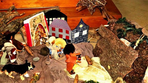Viel Lob von allen Seiten gab es auch wegen des angebrachten vorweihnachtlichen Schmucks im Altarraum hinter der Gitterabtrennung. Hier hatte Johanna Groß aus Osterhofen eine bewundernswerte Krippenwelt zusammengestellt mit selbst hergestellten, kreativ gestalteten Egli-Figuren auf heimat-und waldbezogenem Umfeld. Maria sitzt noch auf einem Hocker und Josef leuchtet schon mit einer Laterne auf den noch leeren Krippenplatz, der an Heiligabend mit dem Jesuskind belegt sein wird.