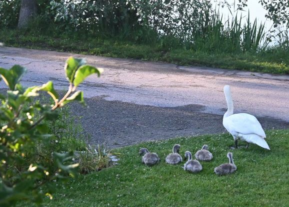Wie jeden morgen so auch heute, bringt Mutter Schwan ihre Jungen zum Äsen in die Grünanlage an der Biberacher Straße. Aber heute bringt sie statt der sechs nur noch fünf Junge mit. Wo ist der sechste junge Schwan abgeblieben?