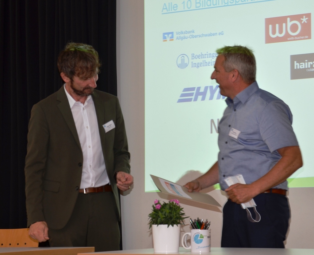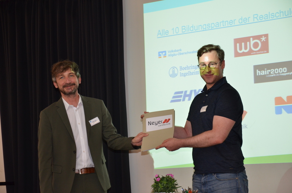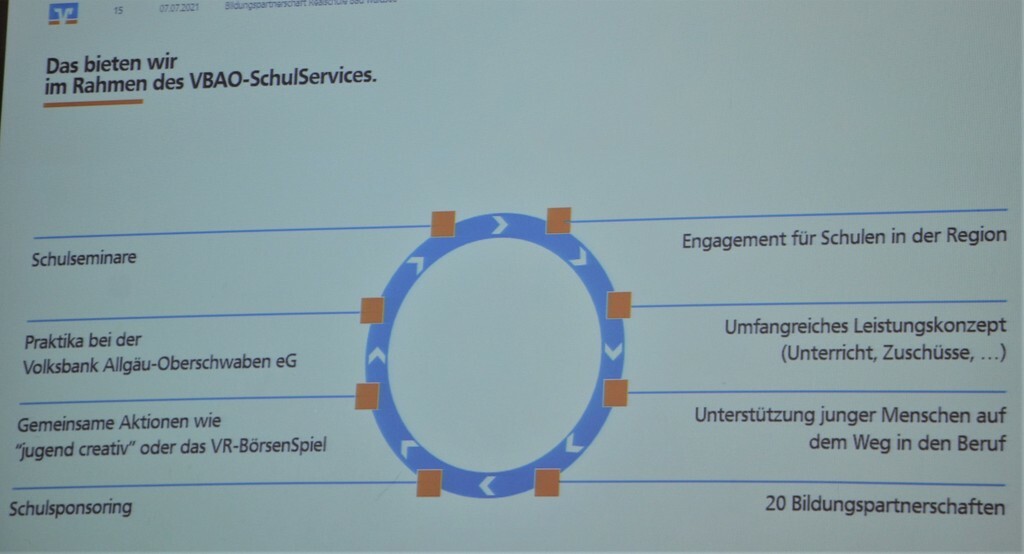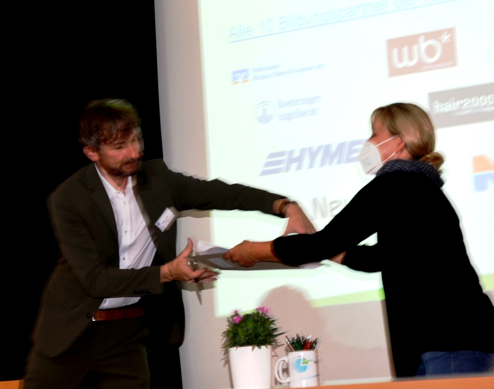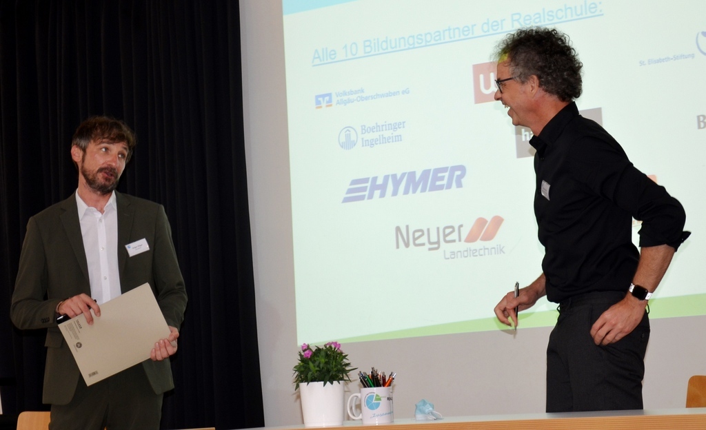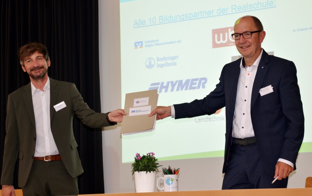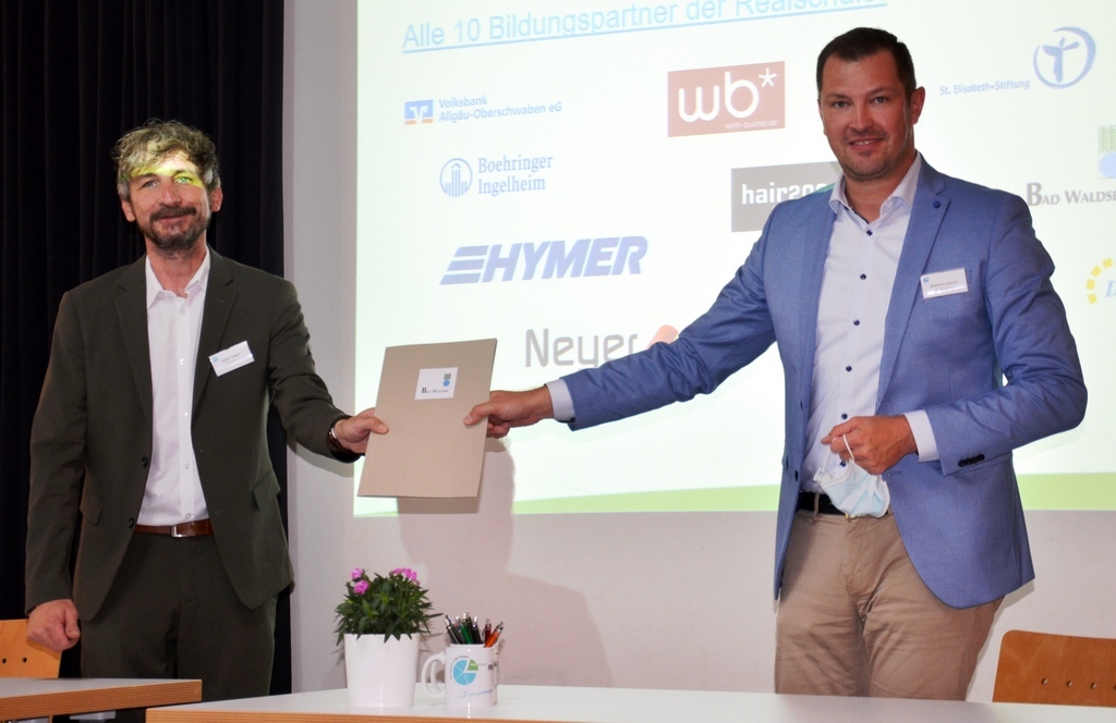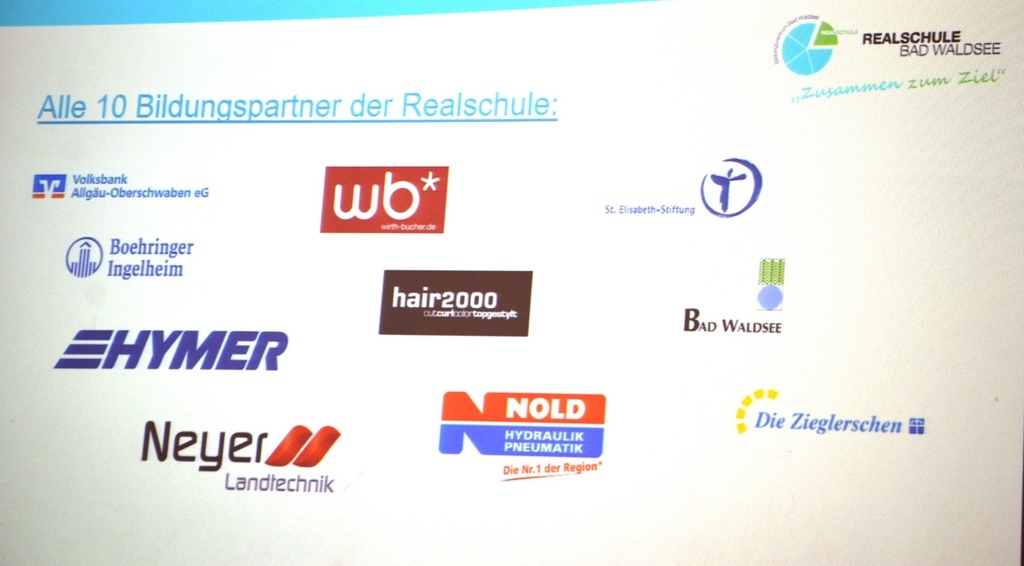 Kläger erinnerte daran, dass die Schule seit etlichen Jahren schon erfolgreiche Bildungspartnerschaften mit sechs Einrichtungen und Unternehmen aus Bad Waldsee und Umland pflegt. Dies sind - alphabetisch aufgeführt - Böhringer Ingelheim (Biberach), Hair 2000 (Bad Waldsee), Schreinerei Wirth-Bucher (Hittelkofen), Stadt Bad Waldsee, St. Elisabeth-Stiftung (Wohnpark am Schloss Bad Waldsee) und Volksbank Allgäu Oberschwaben (Filiale Bad Waldsee).