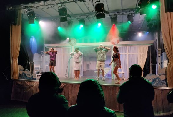 Trotz des teilweise starken Regens wurden die Zuschauer bestens unterhalten und den Darstellern und Darstellerinnen war die Freude deutlich anzumerken, nach langen Monaten ohne Live-Veranstaltungen, wieder vor Publikum zu performen. Und dabei sangen, tanzen und schauspielten die vier vom Feinsten und trotz Regen und kalten Temperaturen musste kein Zuschauer und keine Zuschauerin frieren, denn Gründe zum Mitwippen oder Lachen lieferten die DarstellerInnen im Minutentakt. Für alle Schlagerfans oder die, die es noch werden wollen ist die letzte Vorstellung des „Traumschöffs“ am Freitagabend definitiv ein guter Tipp, denn ab Samstag wird das Stück „Ciao Bella – Ich heirate eine Familie“ am Stadtsee gespielt.