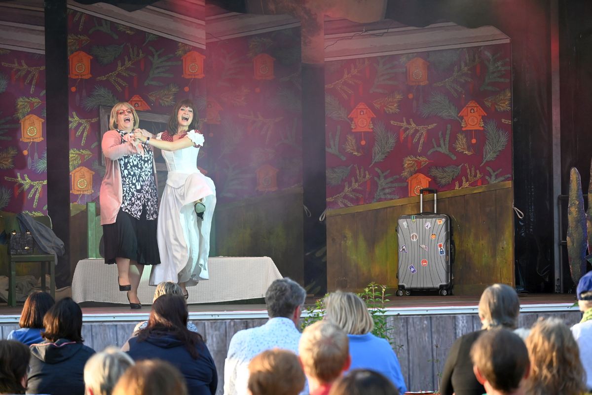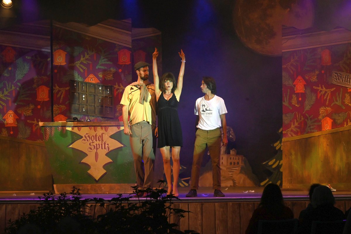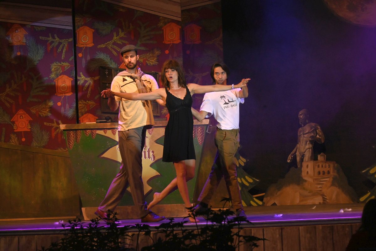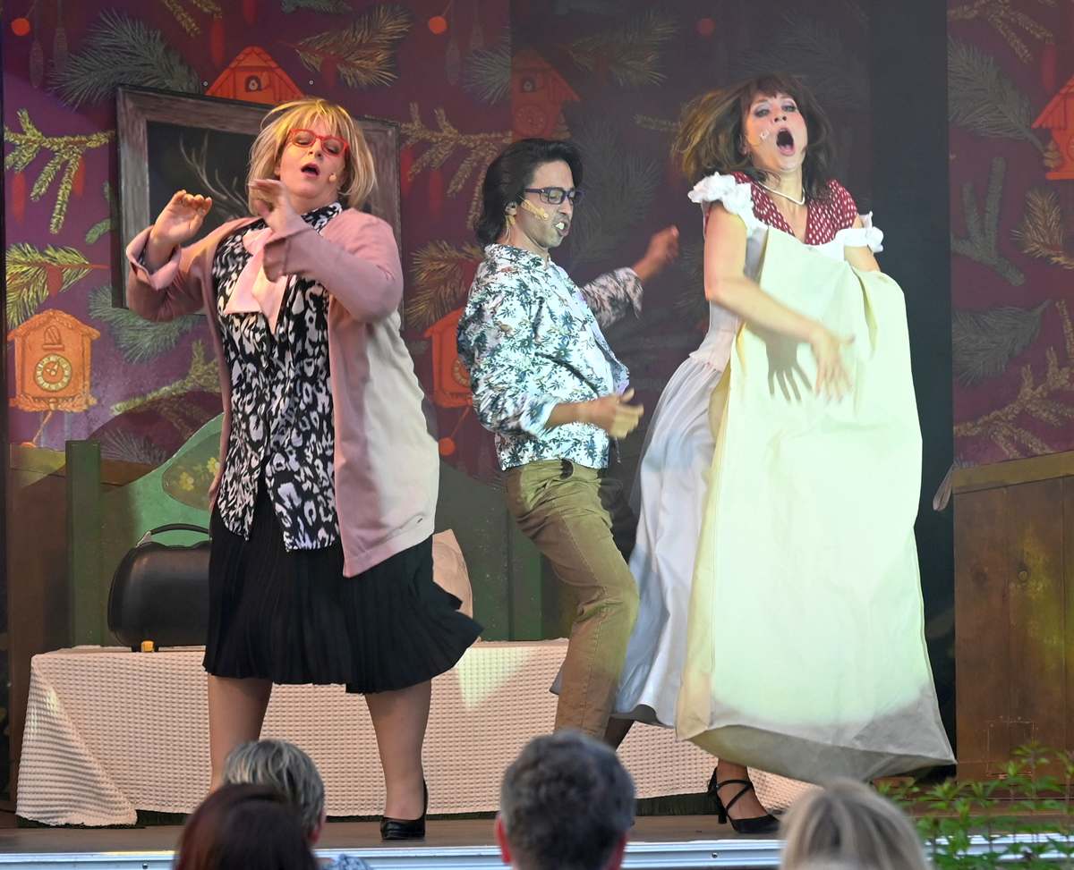 Den Schauspielernpielern und Sängern Maja Sikora, Maike Katrin Merkel, Christian Bindert und Manuel Dengler spürte man die Lust am wieder auftreten dürfen jede Sekunde der Aufführung an und sie spielten und sangen wirklich hinreißend mitreißend.