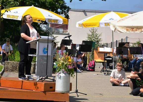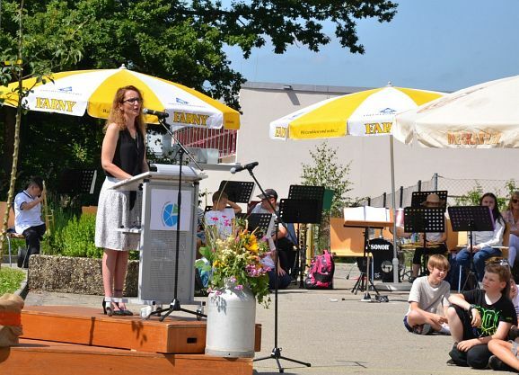 Auch die Elternbeiratsvorsitzende Olga Kauffmann gratulierte im Namen der Elternschaft mit den Worten: „Unsere Schule ist jung, motiviert, offen für Neues. Ich wünsche der Schule weiterhin Gesundheit, Zuversicht, starke Freundschaften, wunderbare Ideen. Alles Gute zum 50sten Geburtstag.“
