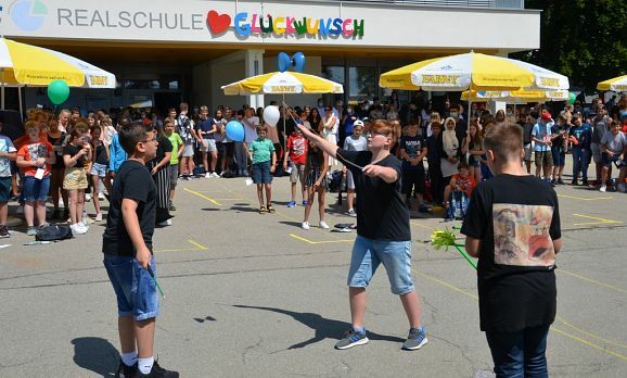 Bad Waldsee - Der Wettergott hatte es am Montagvormittag besonders gut gemeint mit der Realschule Bad Waldsee, denn die geplante Feier zum 50-jährigen Jubiläum dieser beliebten Schulart in Bad Waldsee konnte tatsächlich im Freien stattfinden.