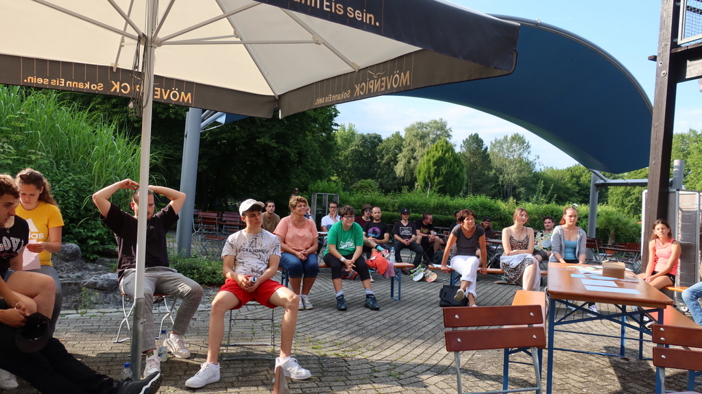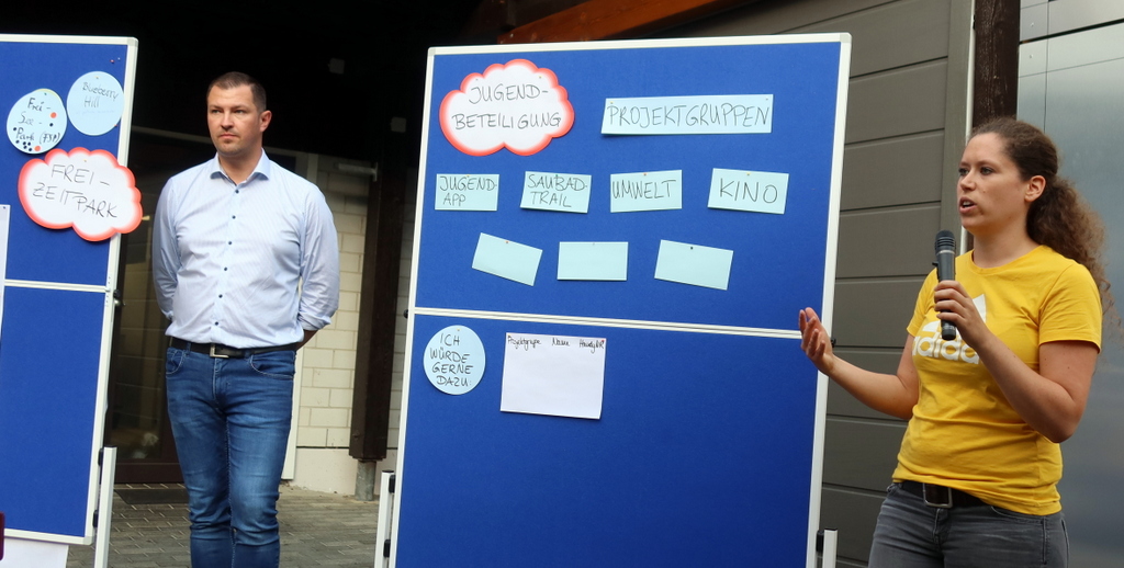 Dreißig Jugendliche und einige junge Erwachsene nutzten diese Gelegenheit zum Meinungsaustausch, gaben Anregungen und stellten Fragen. Bürgermeister Matthias Henne ist dieses Mitmachen der jungen Generation ganz wichtig, wie er immer wieder betonte. Er hatte deshalb auch einen ganzen Stab von Mitarbeiterinnen und Mitarbeitern der Stadtverwaltung mitgebracht, so Claudia Altvater (Verwaltungsbereich Prisma), Brigitte Göppel (Pressestelle), Andreas Heine ( Leitung Hochbau), Carola Krebs (Leiterin Jugend- und Kulturhaus Prisma), Benedikt Metzler (persönlicher Referent des Bürgermeisters) und dazu Ulla Hauser (Freiraumplanerin aus Waldburg) sowie die Bürgermeisterstellvertreterin aus dem Gemeinderat Sonja Wild.