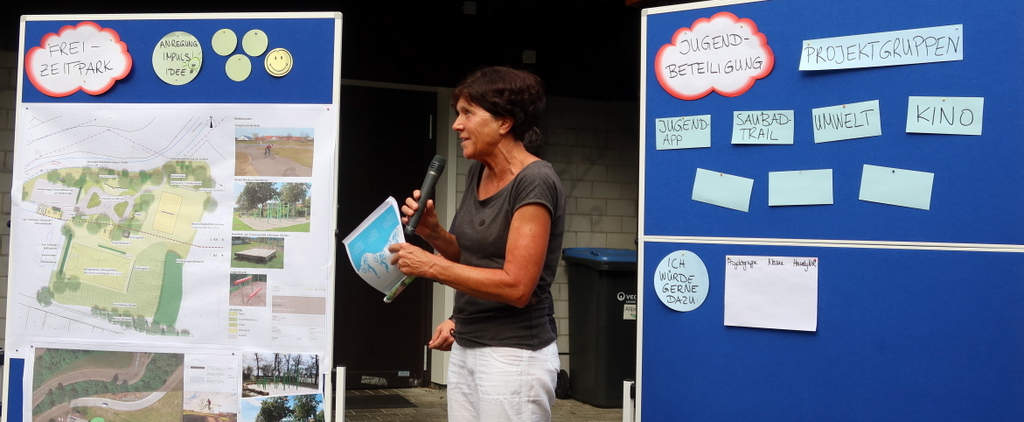 Das Team der Stadtverwaltung hatte dieses Hearing sehr sorgfältig vorbereitet. Auf Stelltafeln wurde anschaulich dargestellt, wie die geplante Erweiterung des Jugend- und Freizeitareals am Stadtsee aussehen könnte.
