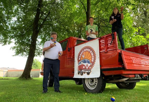 Bad Waldsee-Michelwinnaden - Beim Gummistiefelflohmarkt der KLJB Michelwinnaden am Samstag, den 24. Juli, war die Mobile Junge Kirche (Jugendseelsorge Bad Waldsee) mit einem Jonglierangebot vor Ort. Im wunderschönen Pfarrgarten betrieb der Kirchengemeinderat einen eigenen Flohmarktstand und die Jugendseelsorge war mit (Leih-)Fahrzeug und verschiedenstem Spielematerial präsent.