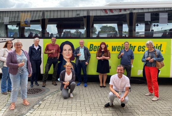 Bad Waldsee/Region - Am Montag, den 2.August, haben Vorstände und Mitglieder der Kreisverbände Ravensburg und Wangen von Bündnis 90/Die Grünen gemeinsam mit der Unternehmerin und Kreisrätin Elke Müller und der Bundestagsabgeordneten Agnieszka Brugger den grünen Bus offiziell eingeweiht. Dieser Bus wurde mit den Bildern von Annalena Baerbock und der Bundestagskandidatin Brugger bedruckt und ist bereits einige Tage auf der Linie 30 unterwegs.