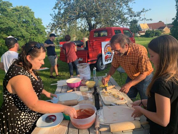 Als Dankeschön für dieses außergewöhnliche Engagement lud die Jugendseelsorge alle mitwirkenden Jungen Künstler und Künstlerinnen mit ihren Familien zu einem Pizzafest ein, dass am Mittwoch, den 12.8. bei perfektem Sommerwetter gefeiert werden konnte. Dabei kam der neue mobile Pizzaofen erfolgreich zum Einsatz.