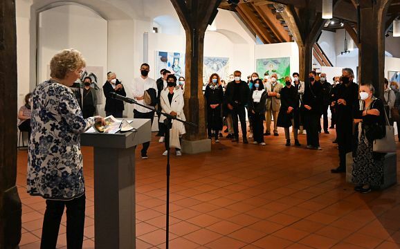 Zunächst stellte sie den Namensgeber des Preises vor. Paul-Heinrich Ebell war Kunsterzieher am Bad Waldseer Gymnasium und betätigte sich als freier Künstler. Er wirkte fünfzig Jahre in Bad Waldsee. Dabei initiierte er „Die kleine Galerie“, damals in den Räumlichkeiten des Elisabethenbades, heute zuhause im Haus am Stadtsee.