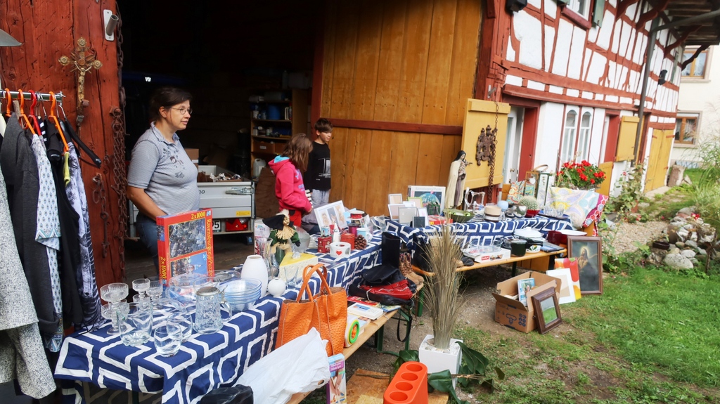 Das Angebot an den Ständen auf den Grundstücken der mitmachenden Familien war wieder breit gefächert. Das größte Angebot gab es bei Kinderspielwaren und Kleidungstücken. Etliche Schnäppchen konnten getätigt werden so auch bei Trödel aus früherer Haushaltsführung, Antiquitäten, Basteleien, Bildern, Büchern, Haushaltsgeräten, Kunst- und Schmuckgegenständen aller Art.