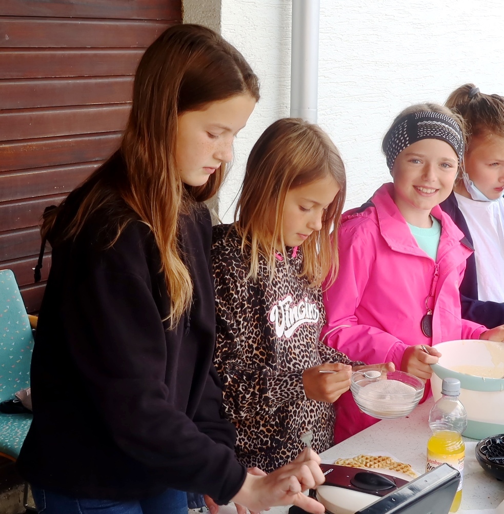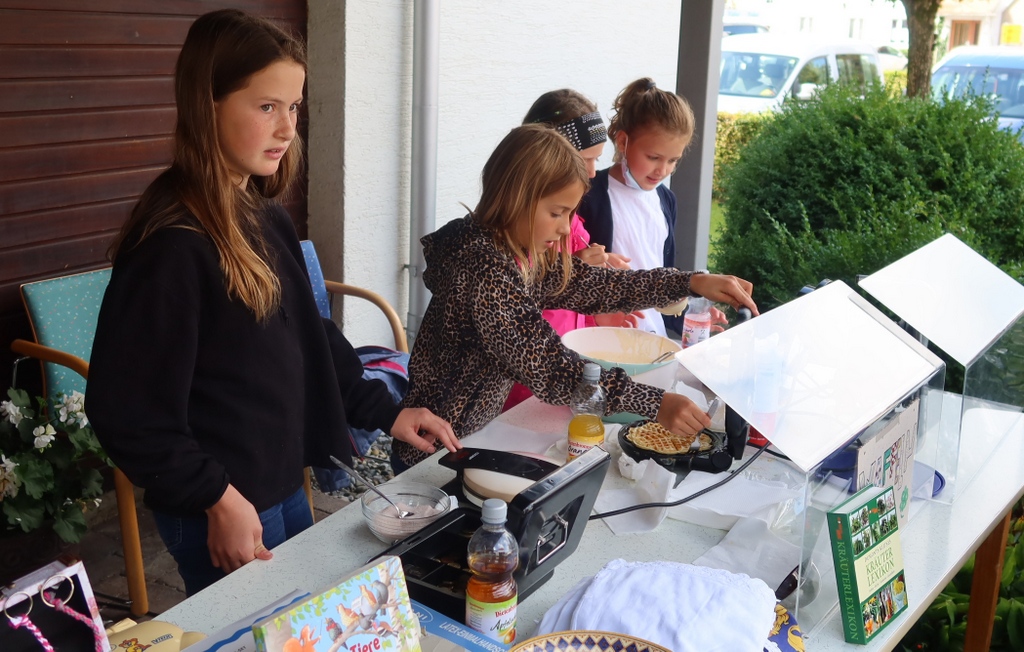 Glückliche Gesichter entdeckte man vor allem beim Pfarrhaus in der Ortsmitte. Dort hatten die Minis (Ministrantinnen und Ministranten) eine reichhaltiges Flohmarkt-Angebot vor allem für Kinder zusammengestellt. Ihr Angebot mit frisch gebackenen Waffeln war besonders gefragt.