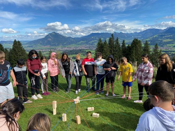 Die starken Tage dienten vor allem dazu, dass sich die Kinder besser kennenlernen und sich eine Klassengemeinschaft entwickelt, die sich auch positiv auf das Lernen in der Schule auswirkt. In diesem Sinne waren die Tage ein voller Erfolg. Nicht nur die aufregende An- und Abreise, auch die Bergtour zum Rangiswanger Horn (1616m) und verschiedene erlebnispädagogische Spiele, unterstützt durch Martin Becker von der Schulsozialarbeit, erforderten viel Teamgeist, gegenseitige Unterstützung und ermöglichten gemeinsame Erlebnisse und Erfolge.