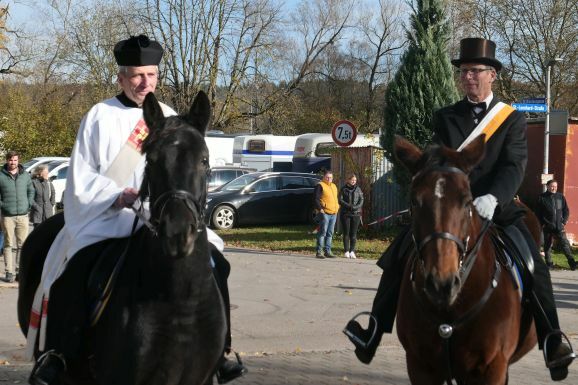 Gaisbeuren - Nachdem im letzten Jahr wegen den Corona-Beschränkungen das Leonhardsfest komplett abgesagt werden musste, konnte es heuer bei herrlichem Sonnenschein stattfinden. Beinahe 50 Reiterinnen und Reiter trafen sich am Dorfgemeinschaftshaus zur Pferdesegnung von Diakon Franz Fluhr.