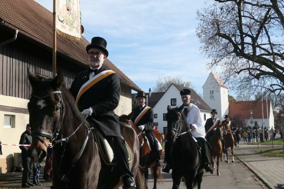 Von der Nachbarschaft nahmen weitere Reiter aus Bergatreute, Bad Waldsee, Aulendorf und Molpertshaus teil. Mit großer Freude konnte Ortsvorsteher Achim Strobel auch den direkt gewählten Bundestagsabgeordneten Axel Müller aus Weingarten unter der Reiterschar begrüßen.