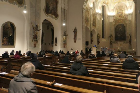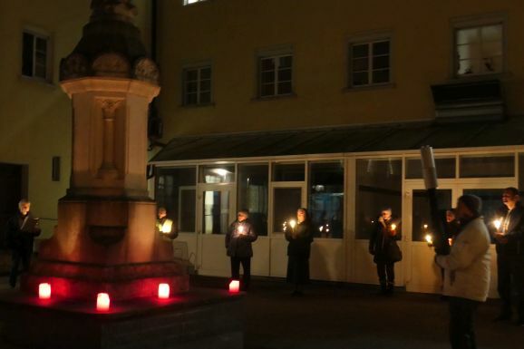 Vor der Lichterprozession gab es einen geistigen Impuls am Dorfbrunnen. „Brunnen sind Orte der Begegnung“ mit diesen Worten einer Klosterschwester wurde der Bezug zum Gut-Betha-Brunnen im Klostergelände hergestellt. Gerade in schweren Zeiten wird dieses Wasser von vielen Wallfahrern für Gesundung und Heilung geschätzt. Anschließend zogen die Teilnehmer singend und betend durch die lichterfüllten Straßen von Reute den Klosterberg hinauf.