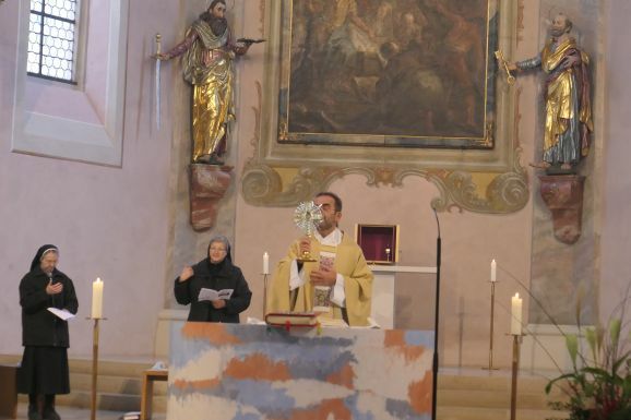 Die musikalische Gestaltung dieser Gottesdienste übernahmen Schwestern mit Gesang, Hermann Hecht an der Orgel, sowie Gerd Leiprecht an der Trompete. Nach dem Gottesdienst reihten sich viele Wallfahrer vor dem Grablegungsaltar ein, um dort den persönlichen Einzelsegen zu erhalten.