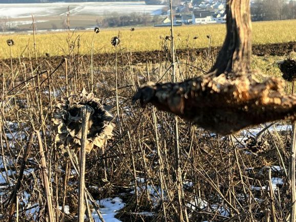 Auch die Vögel erfreuten sich am Sonnenblumenparadies. Denn jetzt im Winter fanden sie einen reich gedeckten Tisch vor und dies in der freien Natur.