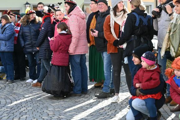 So kam doch noch ein bisschen Wächsebrauch-Feeling für die Kleinsten auf die Fasnet. Und den Sammlerfrauen in den Festern machte es sichtlich Spaß, mit vollen Händen Bonbons auf die Kinder auf der Hochstatt regnen zu lassen.