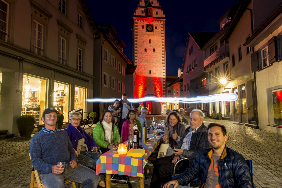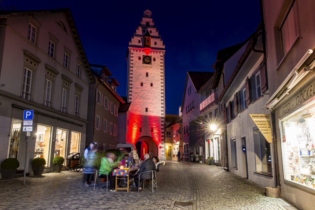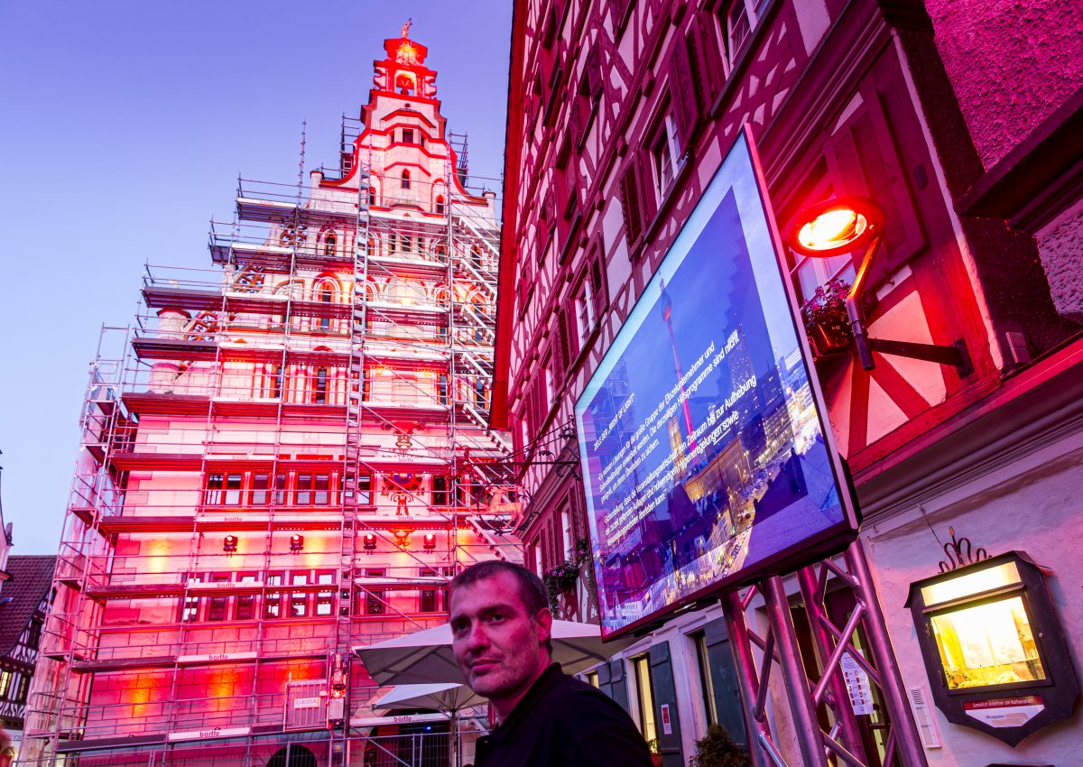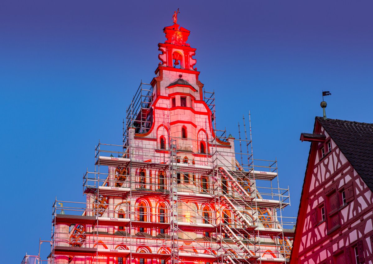 Normalerweise stattet Johannes Knoll Festivals mit technischen Raffinessen aus. Nicht so in diesem Jahr. Mit einem kleinen Team wurden in Bad Waldsee nun rote „Mahnmale“ gesetzt. Dabei war eine gehörige Portion Flexibilität gefordert, denn die Rathausfront wurde pünktlich am Montag noch eingerüstet. Mit einem rot beleuchteten Kornhaus und roten Spots am Wurzacher Tor schufen die Techniker dennoch eine eindrucksvolle Stimmung in der Kurstadt.