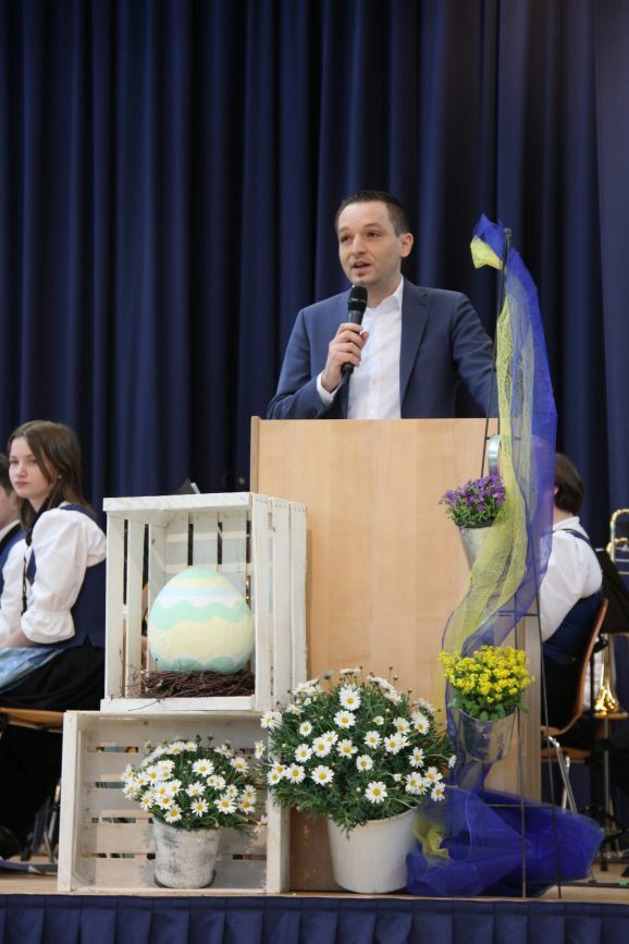 Eingeladen in die frühlingshaft dekorierte Konzertstätte hatte der Musikverein Reute-Gaisbeuren. Zahlreiche Besucher waren gekommen, um Musik zu genießen und dabei Gutes für die zahllosen Flüchtlinge im Ukrainekrieg zu tun. Zu den Gästen zählten unter anderem MdB Benjamin Strasser, Oberbürgermeister Matthias Henne, Bürgermeisterin Monika Ludy sowie Vertreter*innen der Ortschaft und des Klosters.