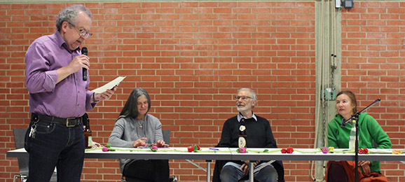 Dann wurde der mit Spannung und Vorfreude erwartete einstündige Film von Alex Knor gezeigt: mit Musik unterlegt und mit Kommentaren des Filmemachers gewürzt, belegt er die Schönheit, Schutzwürdigkeit und Einzigartigkeit unserer Landschaft, in der wir so gerne leben, arbeiten und uns entspannen. Aus der Vogelperspektive erlebt man die verschiedenen Jahreszeiten und die Gefahren durch noch mehr Kiesabbau und drohende Windräder.