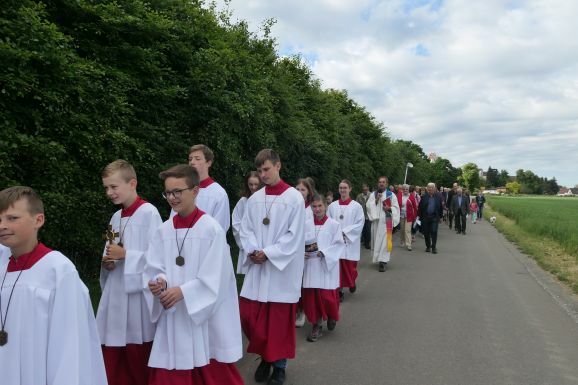 Reute - Nach zweijähriger Pause starteten knapp 100 Gläubige aus Reute-Gaisbeuren an Christi Himmelfahrt wieder zum gemeinsamen Gottesdienst an der Eugen-Bolz-Schule nach Bad Waldsee.