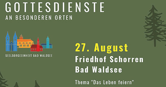 Bad Waldsee (rei) - Der Reigen der Sonntagabend-Gottesdienste im Freien geht am 27. Weiter: Dann versammelt man sich im Schorren-Friedhof. Das Thema lautet: „Das Leben feiern.“ Die etwa 40-minütige Feier beginnt um 19.00 Uhr.